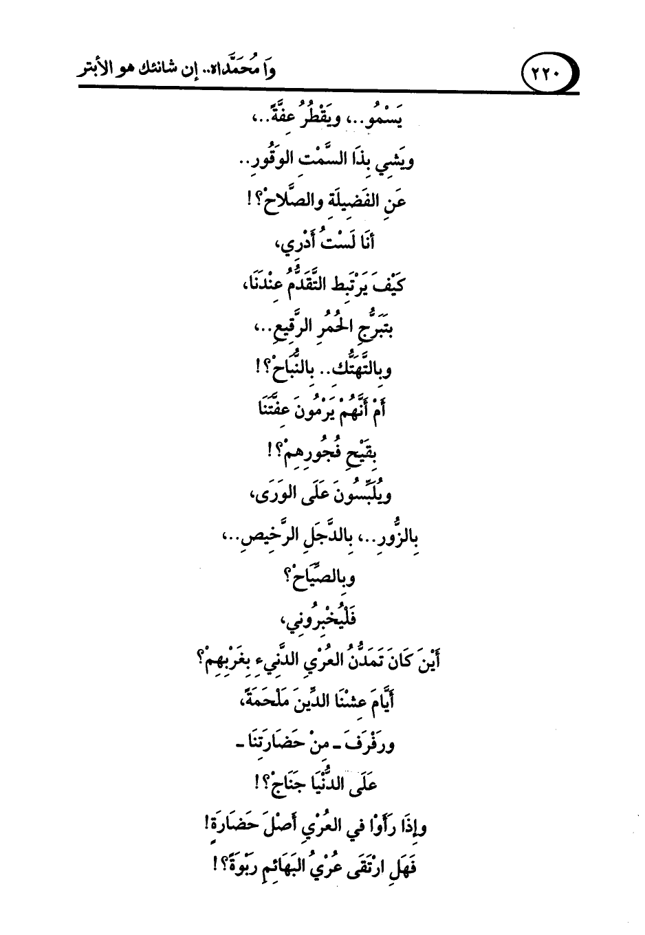 فَهَلِ ارْتَقَى عُرْيُ البَهَائِم ربوَةً؟!