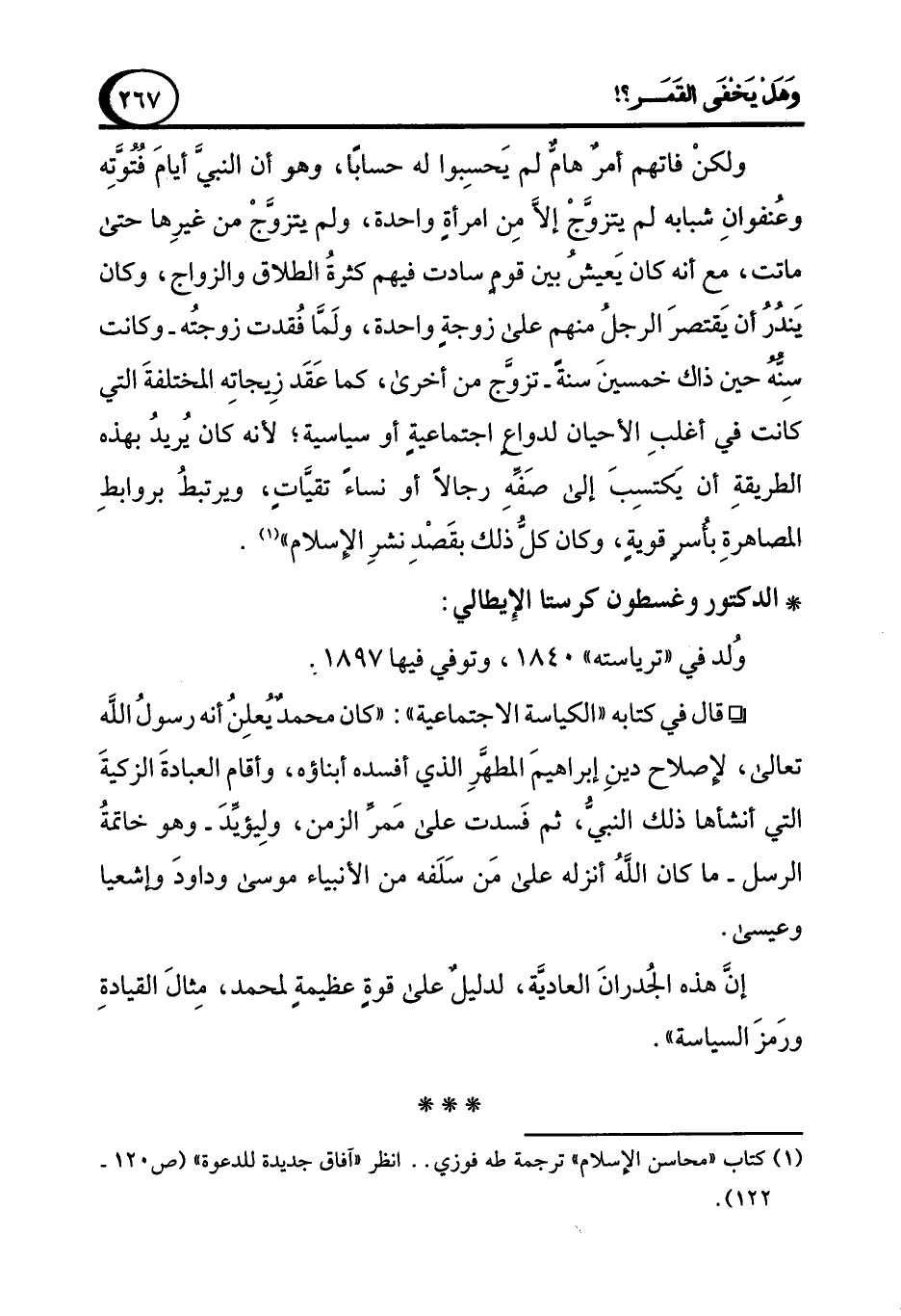 (¬1) كتاب "محاسن الإسلام" ترجمة طه فوزي .. انظر "آفاق جديدة للدعوة" (ص 120 - 122).