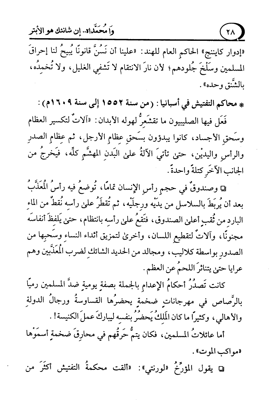 ° يقول المؤرَّخُ "لورنتي": "ألقت محكمةُ التفتيش أكثَرَ من