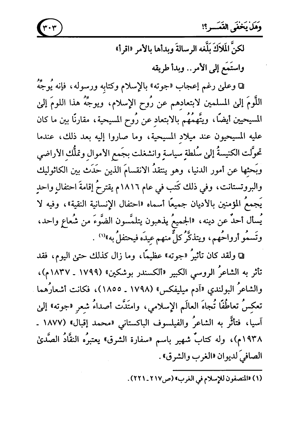 (¬1) "المنصفون للإسلام في الغرب" (ص 217 - 221).