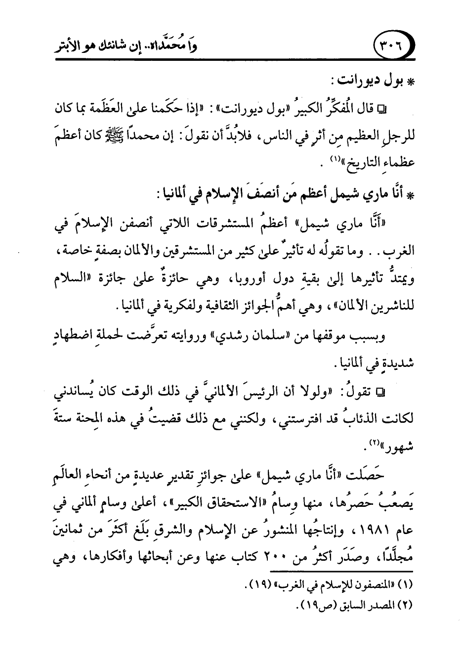 (¬1) "المنصفون للإسلام في الغرب" (19).