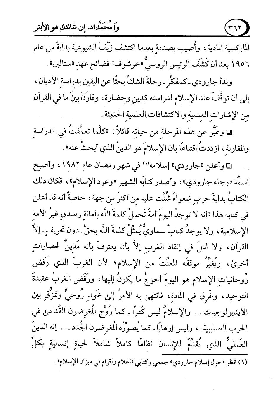 (¬1) انظر "حول إسلام جارودي" جمعي وكتابي "أعلام وأقزام في ميزان الإسلام".
