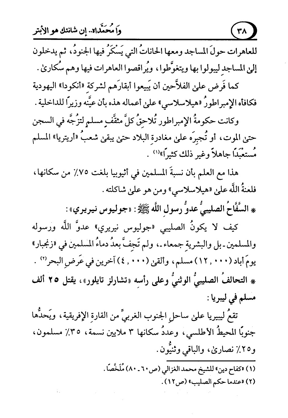 هذا مع العلم بأن نسبةَ المسلمين في أثيوبيا بلغت 75% من سكانها، فلعنةُ الله على "هيلاسلاسي" ومن هو على شاكلته.