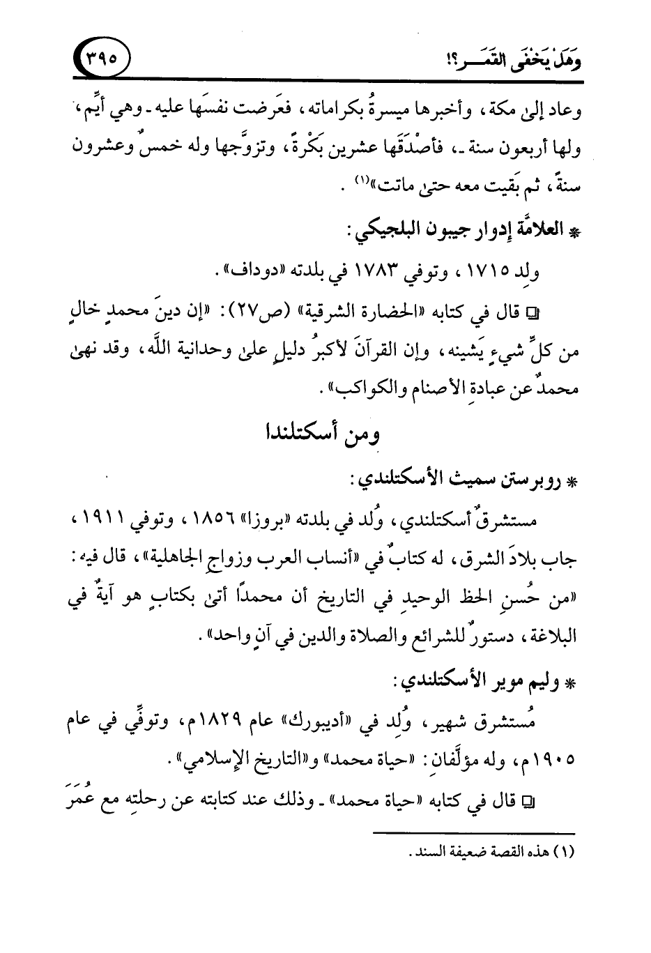 مستشرقٌ أسكتلندي، وُلد في بلدته "بروزا" 1856، وتوفي 1911، جاب بلادَ الشرق، له كتابٌ في "أنساب العرب وزواجِ الجاهلية"، قال فيه: "من حُسنِ الحظ الوحيدِ في التاريخ أن محمدًا أتى بكتابٍ هو آيةٌ في البلاغة، دستورٌ للشرائع والصلاة والدين في آنٍ واحد".