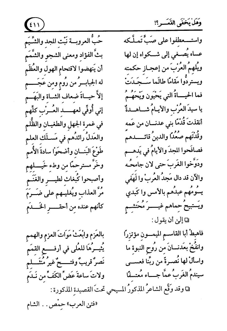 ° وقد وَقَّع الشاعرُ المذكورُ المسيحي تحتَ القصيدةِ المذكورة:
