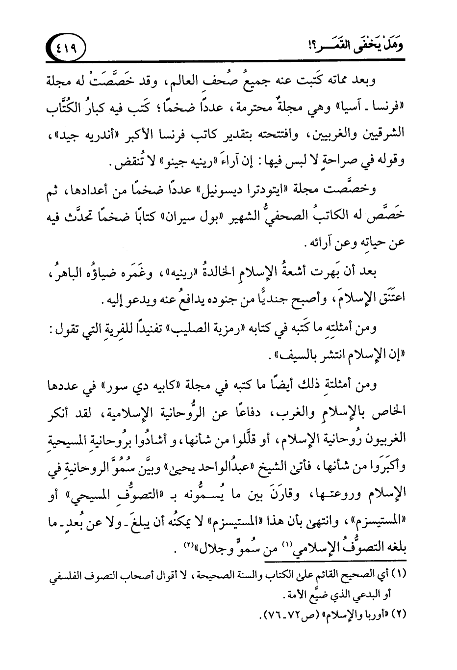 (¬2) "أوربا والإسلام" (ص 72 - 76).