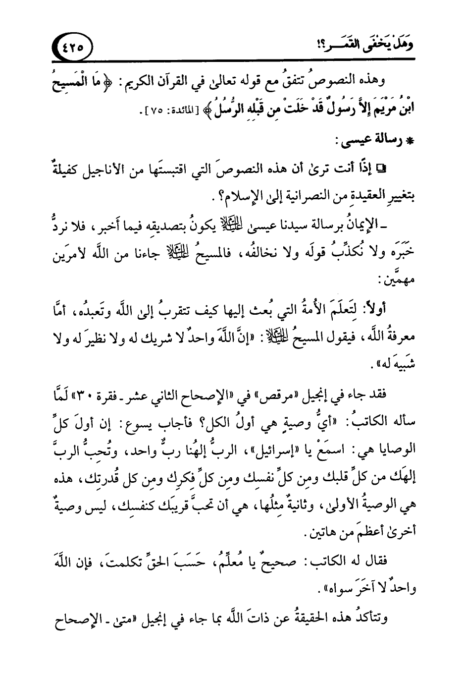 ° إذًا أنت ترى أن هذه النصوصَ التي اقتبستَها من الأناجيل كفيلةٌ بتغييرِ العقيدةِ من النصرانية إلى الإسلام؟.