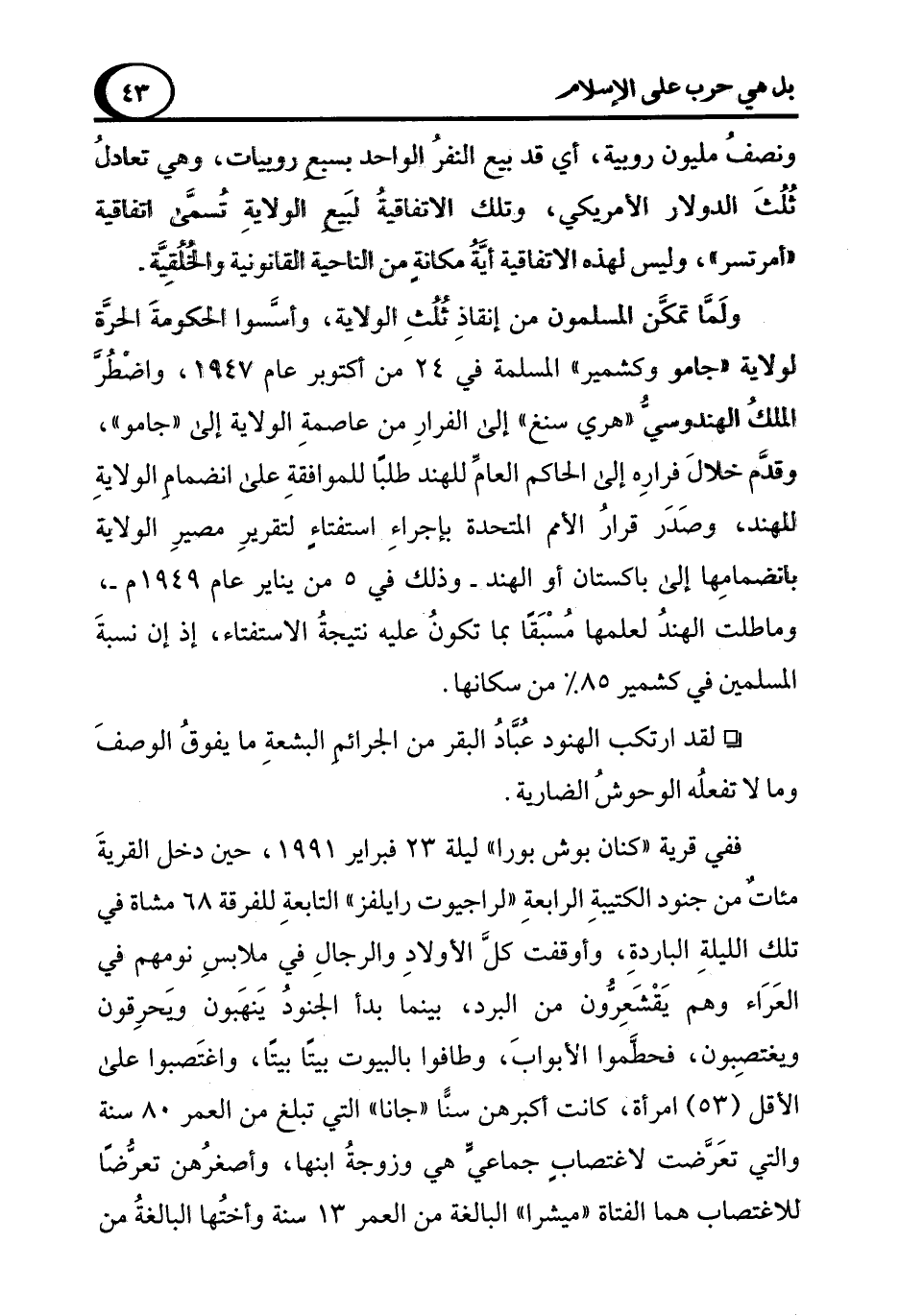° لقد ارتكب الهنود عُبَّاد البقر من الجرائم البشعةِ ما يفوقُ الوصفَ وما لا تفعلُه الوحوشُ الضارية.