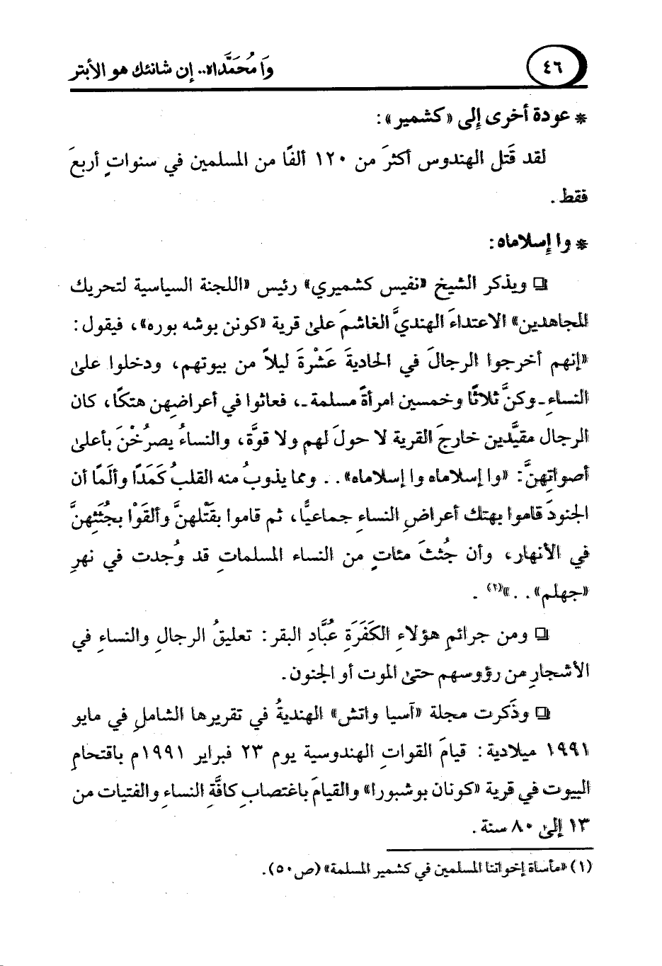 (¬1) "مأساة إخواننا المسلمين في كشمير المسلمة" (ص 50).
