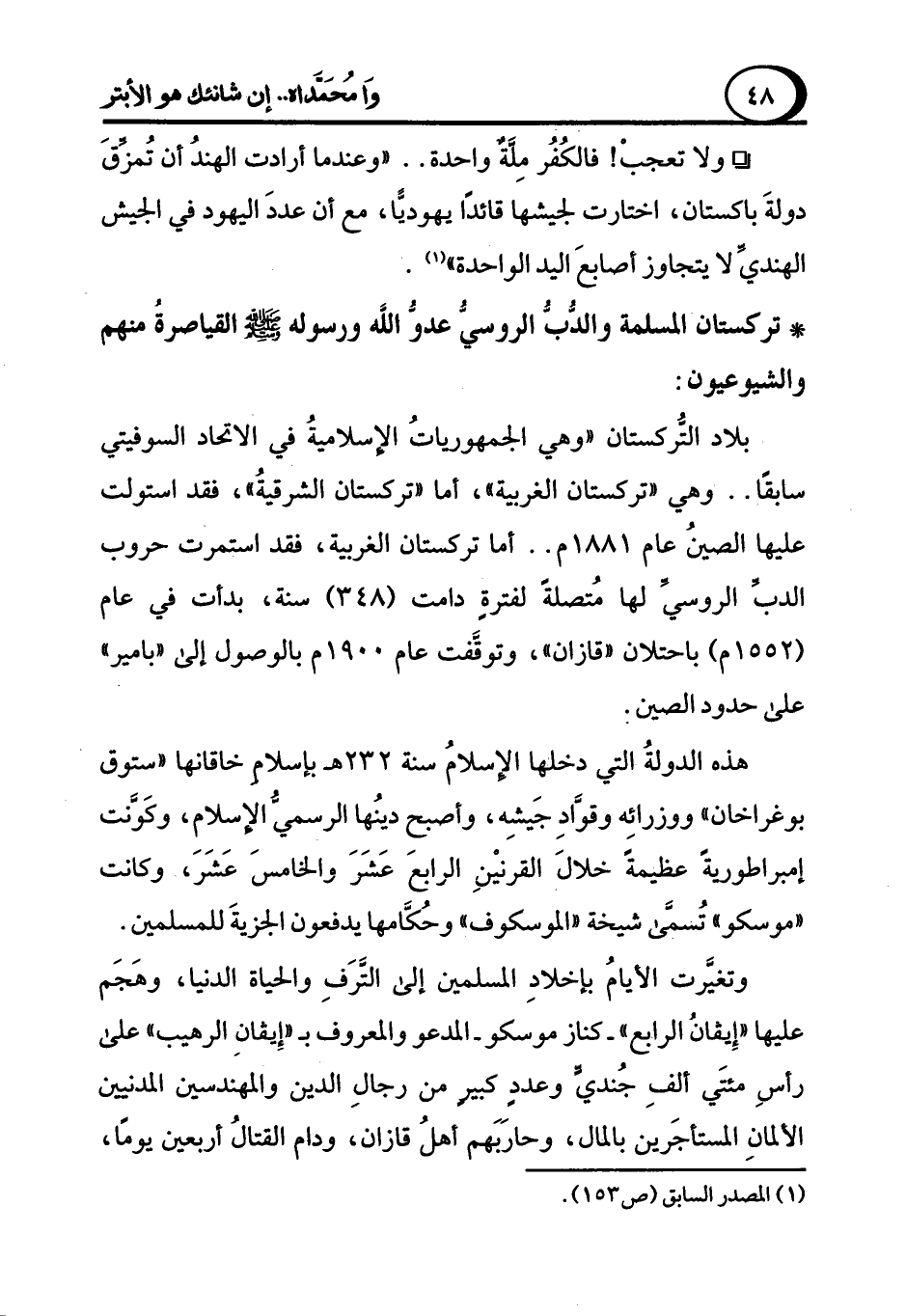 * تركستان المسلمة والدُّبُّ الروسيُّ عدوُّ الله ورسوله - صلى الله عليه وسلم - القياصرةُ منهم والشيوعيون:
