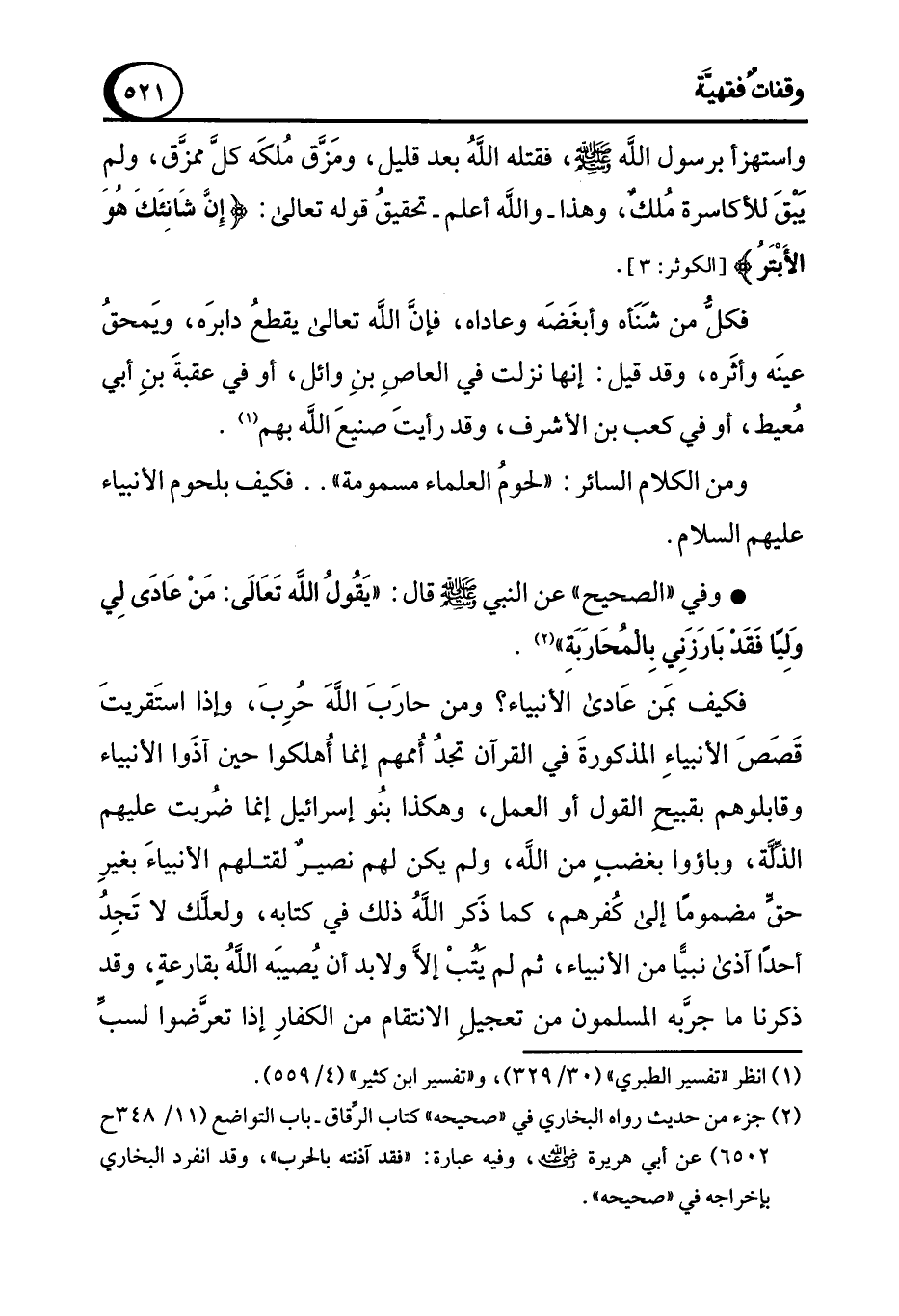 (¬2) جزء من حديث رواه البخاري في "صحيحه" كتاب الرِّقاق- باب التواضع (11/ 348ح 6502) عن أبي هريرة - رضي الله عنه -، وفيه عبارة: "فقد آذنته بالحرب"، وقد انفرد البخاري بإخراجه في "صحيحه".