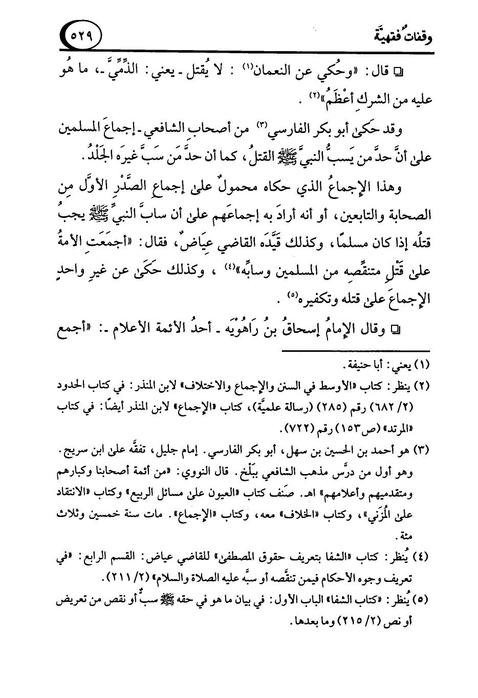 (¬4) يُنظر: كتاب "الشفا بتعريف حقوق المصطفى" للقاضي عياض: القسم الرابع: "في تعريف وجوه الأحكام فيمن تنقصه أو سبَّه عليه الصلاة والسلام" (2/ 211).