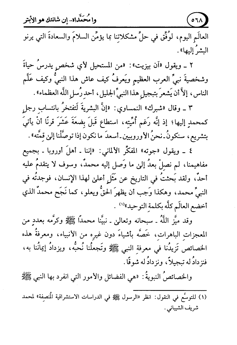 (¬1) للتوسّع في النقول: انظر "الرسول - صلى الله عليه وسلم - في الدراسات الاستشراقية المُنصِفة" لمحمد شريف الشيباني.