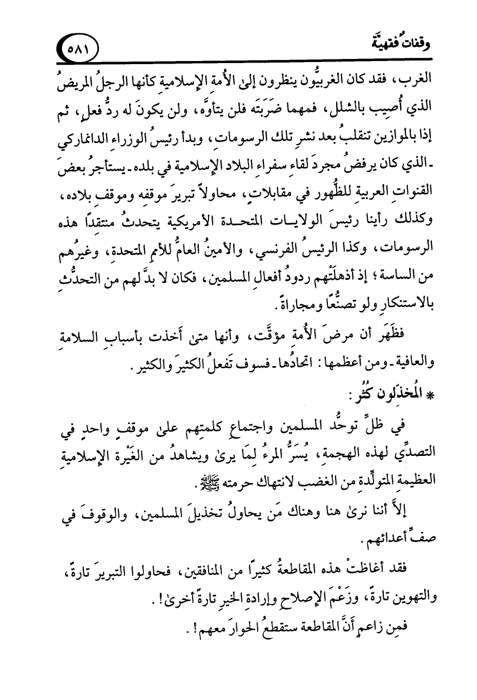 إلاَّ أننا نرى هنا وهناك مَن يحاولُ تخذيلَ المسلمين، والوقوفَ في صفِّ أعدائهم.