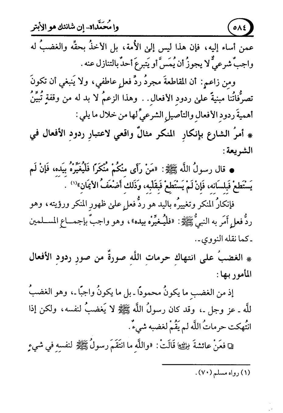 * الغضبُ على انتهاكِ حرماتِ اللهِ صورةٌ من صورِ ردودِ الأفعال المأمور بها: