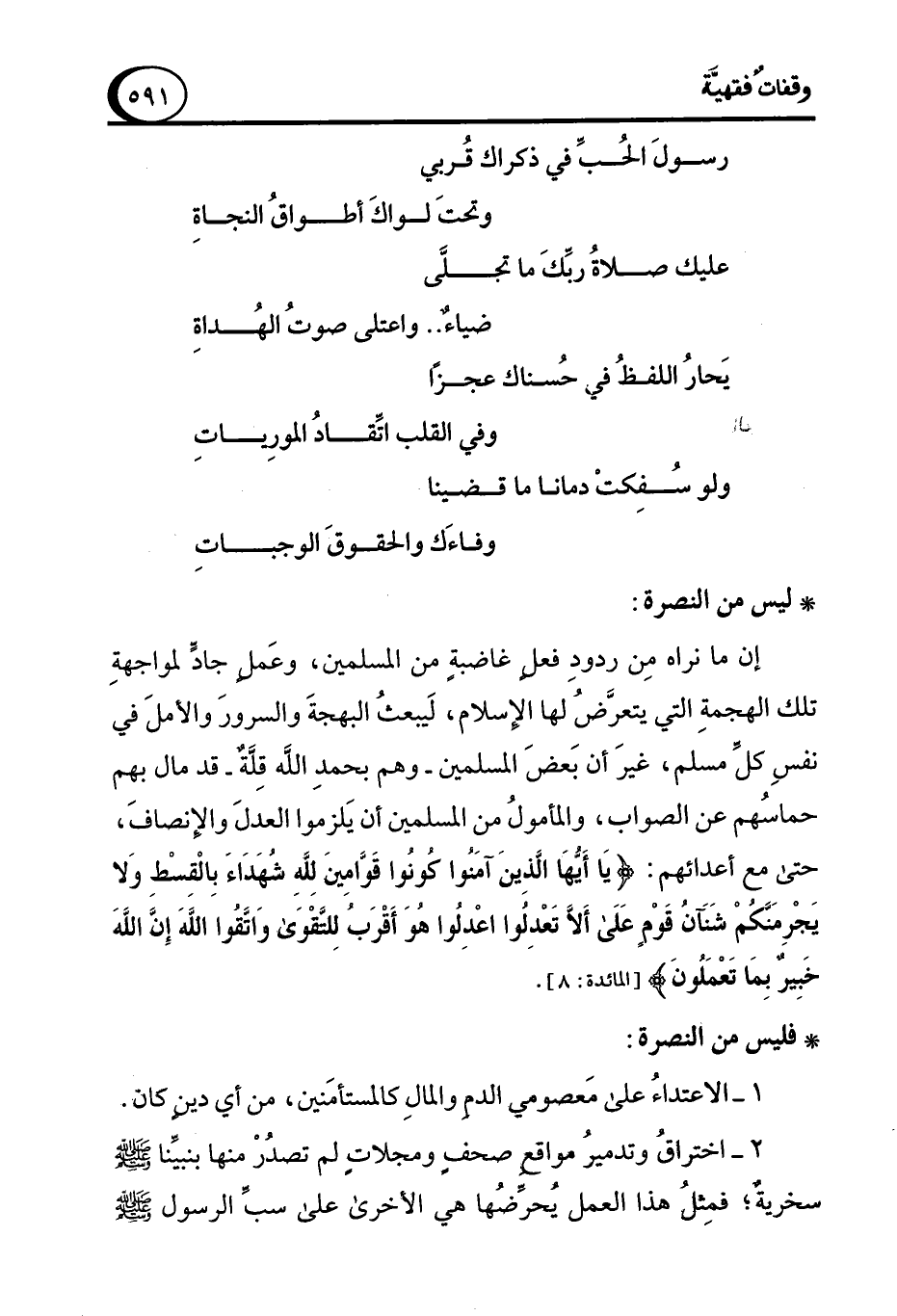 عليك صلاةُ ربِّكَ ما تجلَّى ... ضياءٌ .. واعتلى صوتُ الهُداةِ