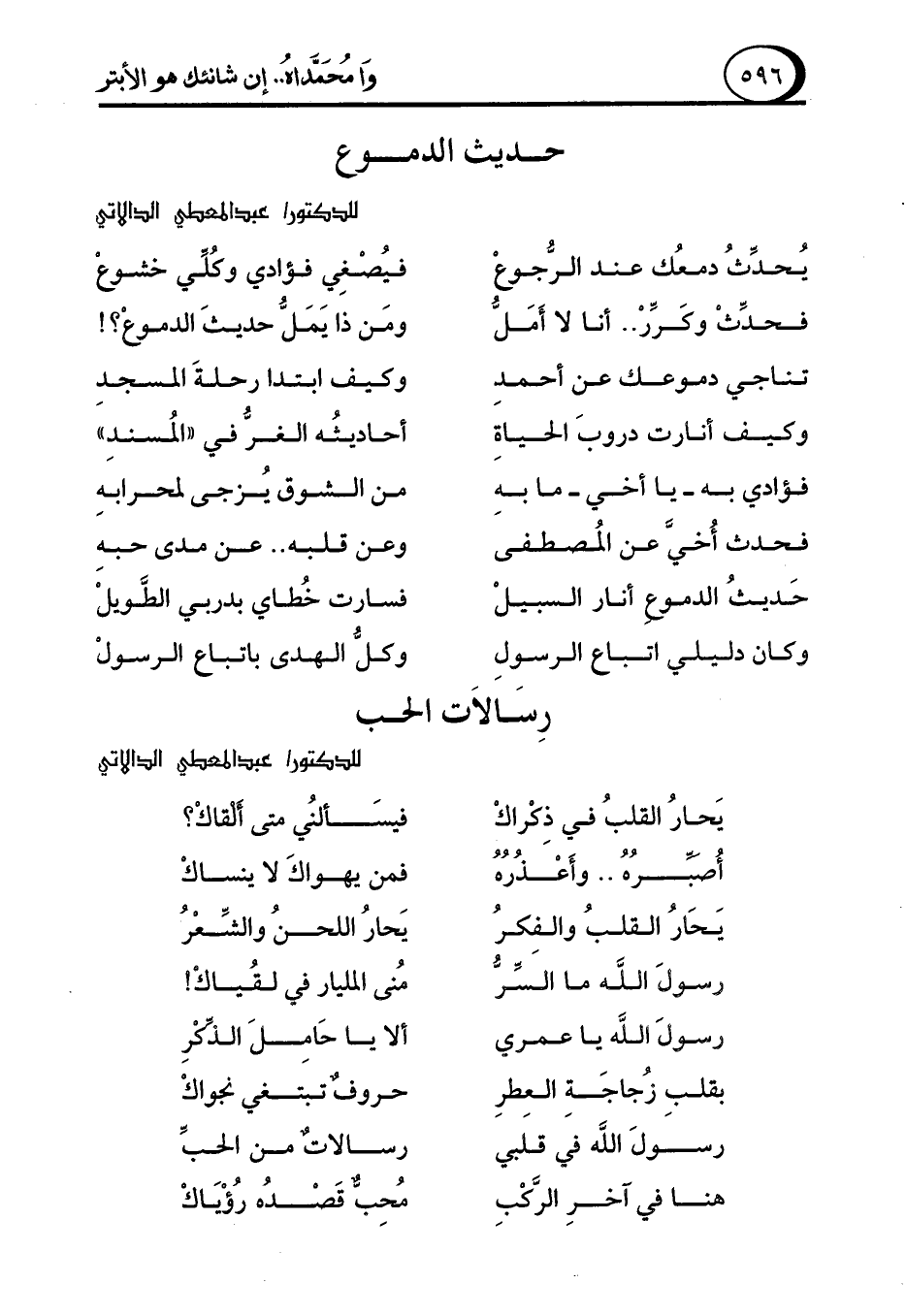 فحدِّثْ وكَرِّرْ .. أنا لا أَمَلُّ ... ومَن ذا يَمَلُّ حديثَ الدموعْ؟!