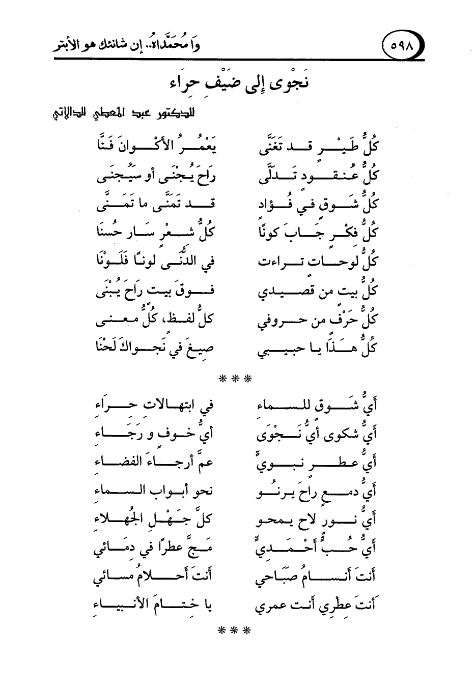 أَنتَ عِطْرِي أنت عمري ... يا خِتامَ الأنبياءِ