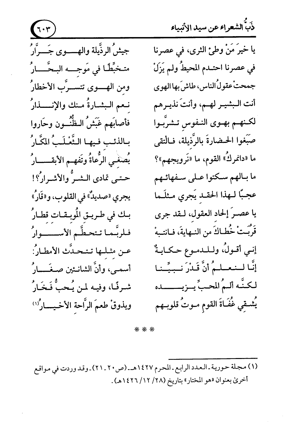(¬1) (مجلة حورية- العدد الرابع- المحرم 1427 هـ- (ص 20 - 21) - وقد وردت في مواقع أخرى بعنوان "هو المختار" بتاريخ (28/ 12/ 1426 هـ).