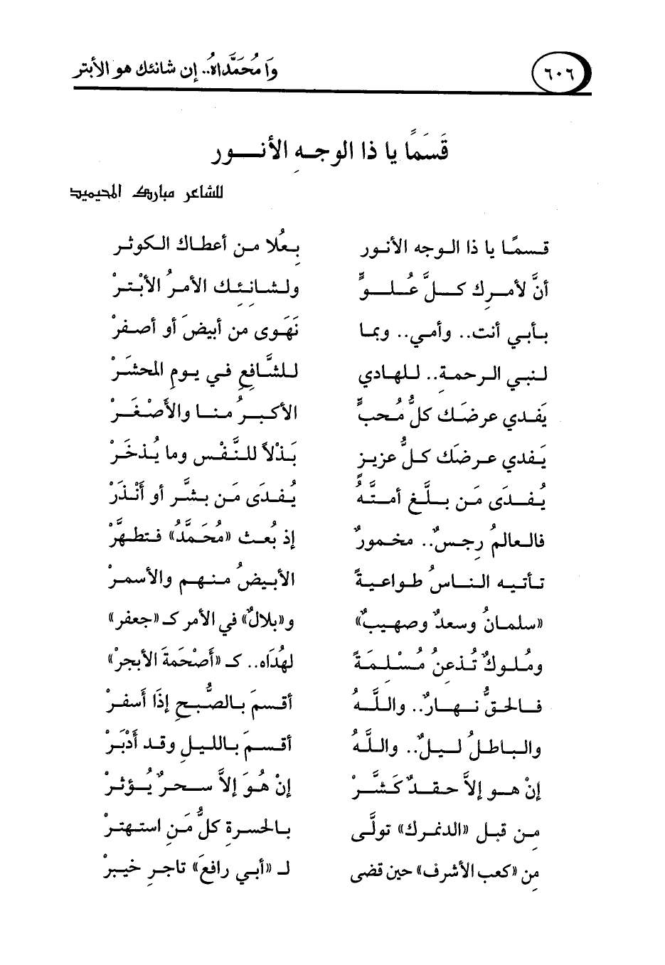 قسمًا يا ذا الوجه الأنور ... بِعُلا من أعطاك الكوثر