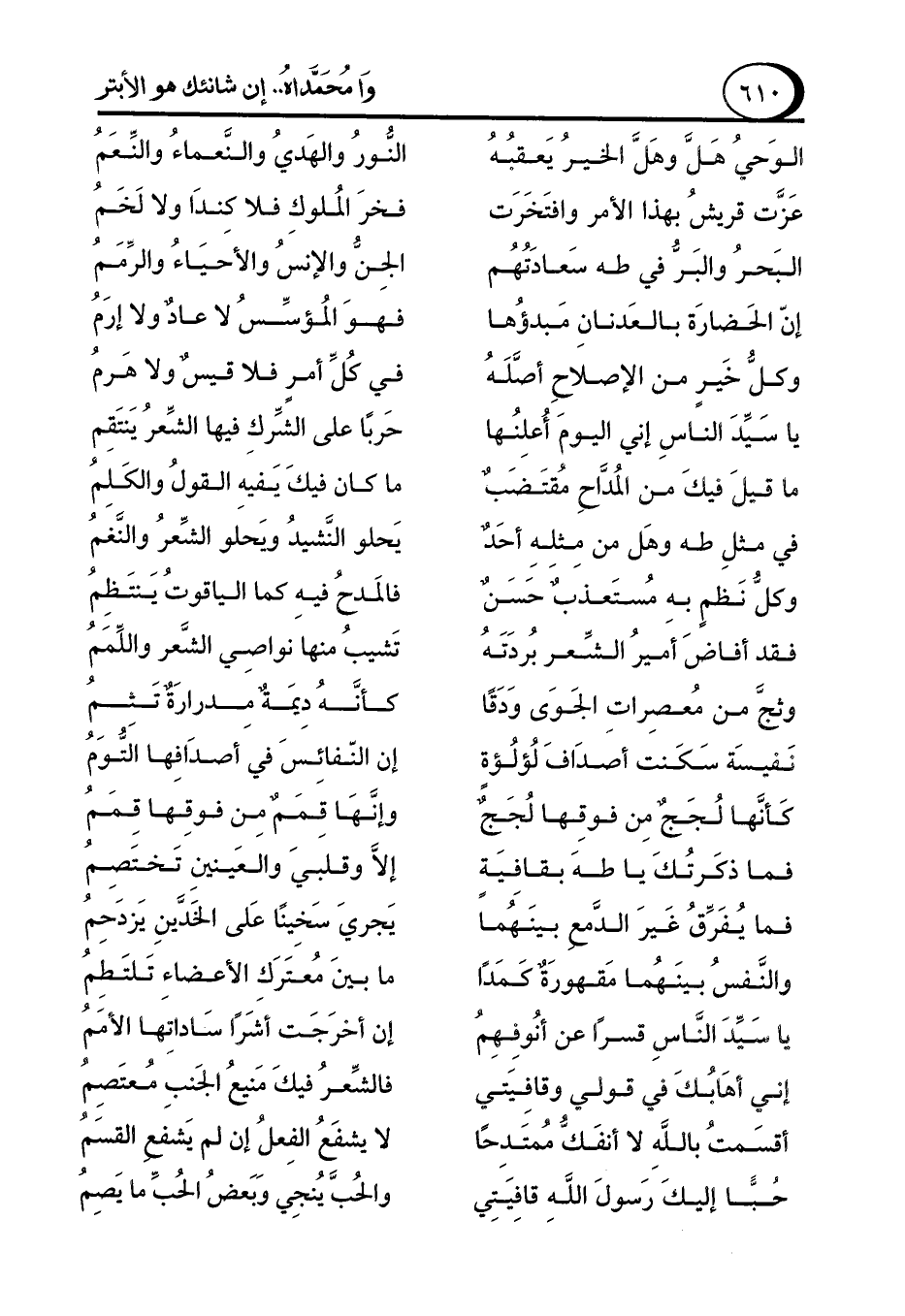 في مثلِ طه وهَل من مِثلِهِ أحَدٌ ... يَحلو النَّشيدُ ويَحلو الشِّعرُ والنَّغمُ