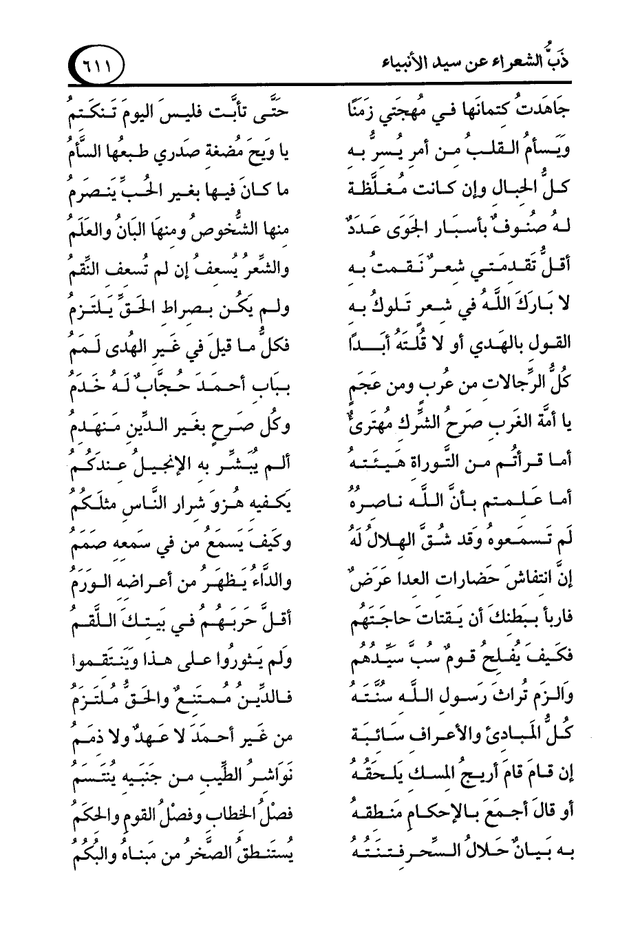 لا بَارَكَ اللهُ في شِعرٍ تَلوكُ بهِ ... ولم يَكُن بصِراطِ الحَقِّ يَلتَزمُ