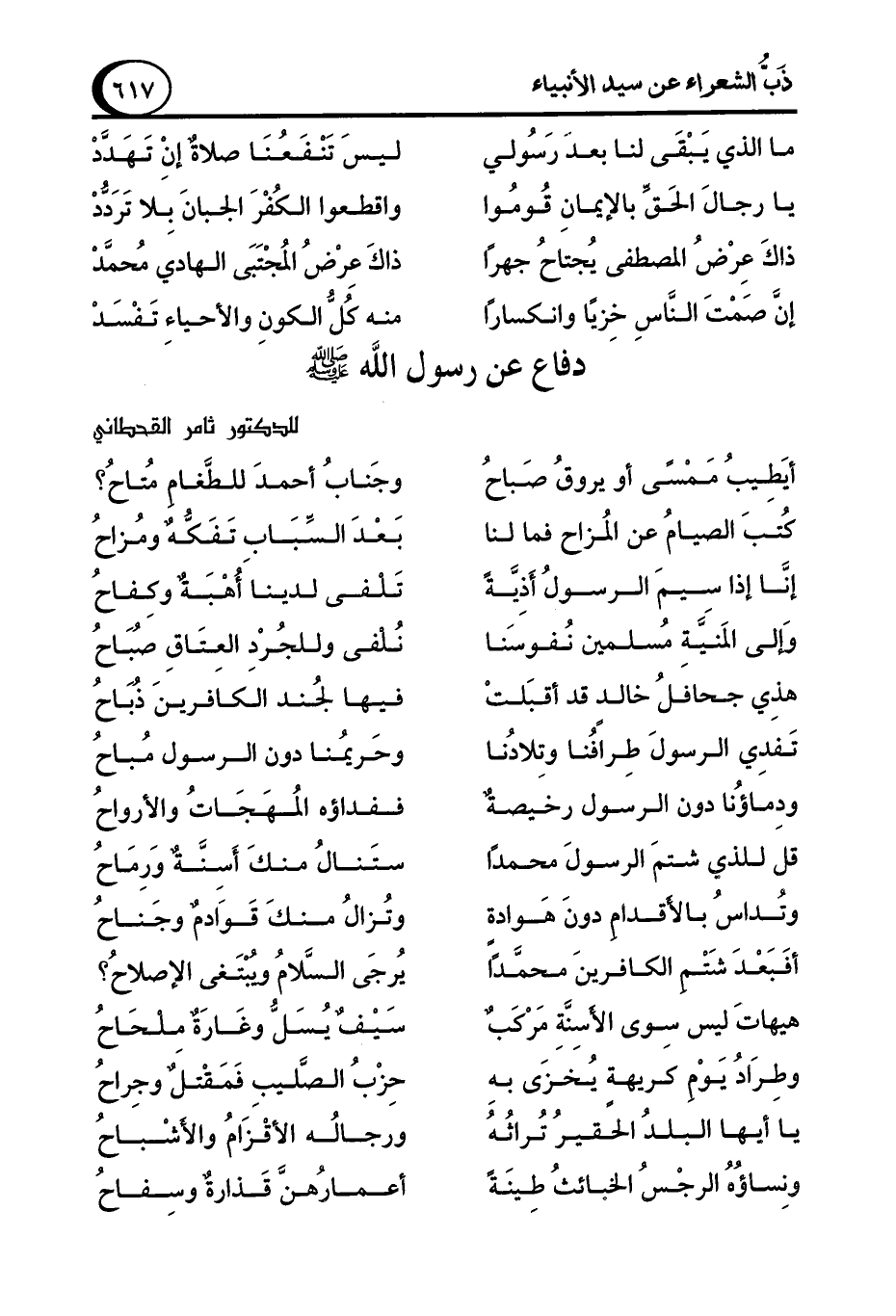 ذاكَ عِرْضُ المصطفى يُجتاحُ جهرًا ... ذاكَ عِرْضُ المُجْتَبَى الهادي مُحمَّد