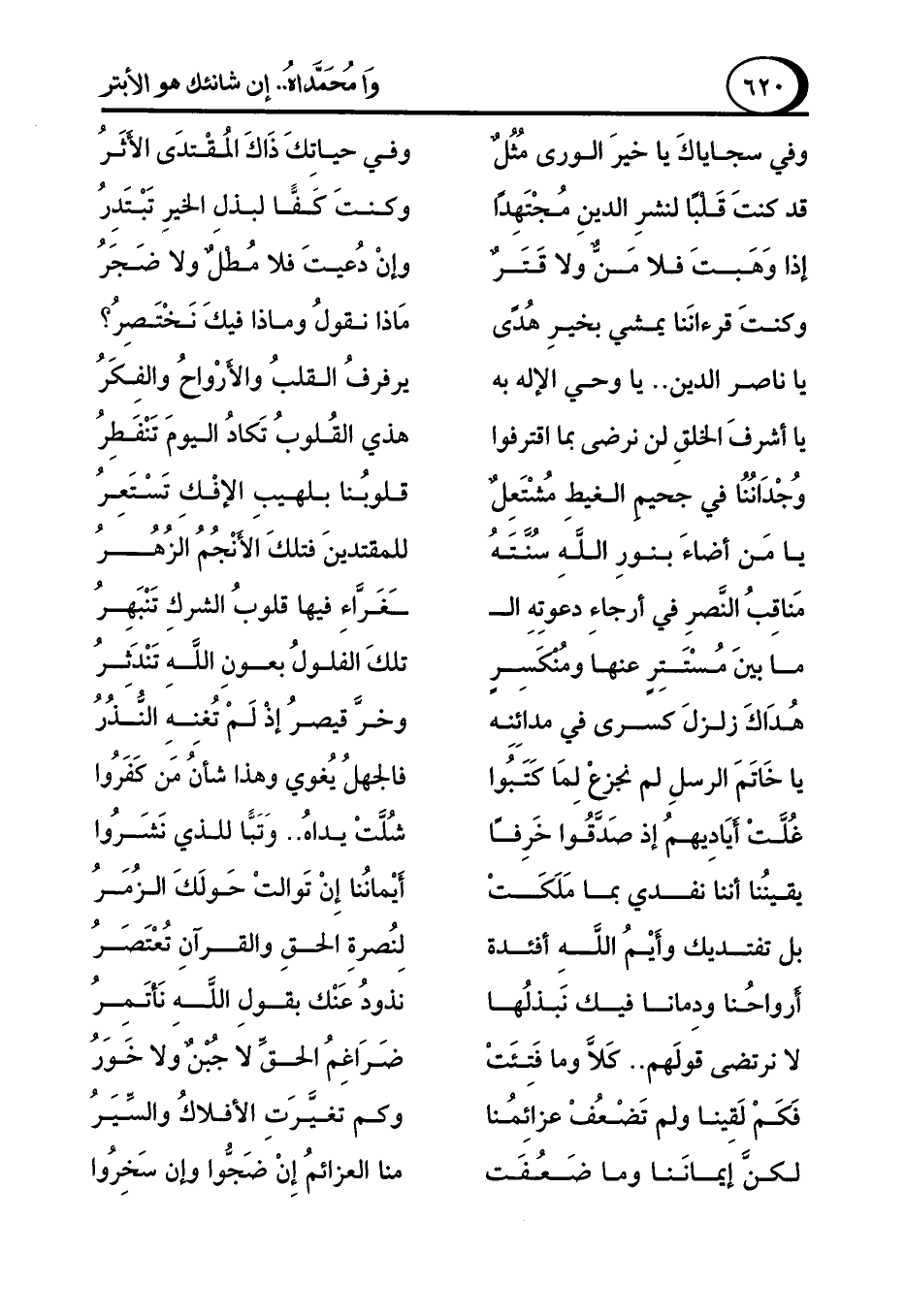 يا ناصر الدين .. يا وحي الإله به ... يرفرفُ القلبُ والأرْواحُ والفِكَرُ