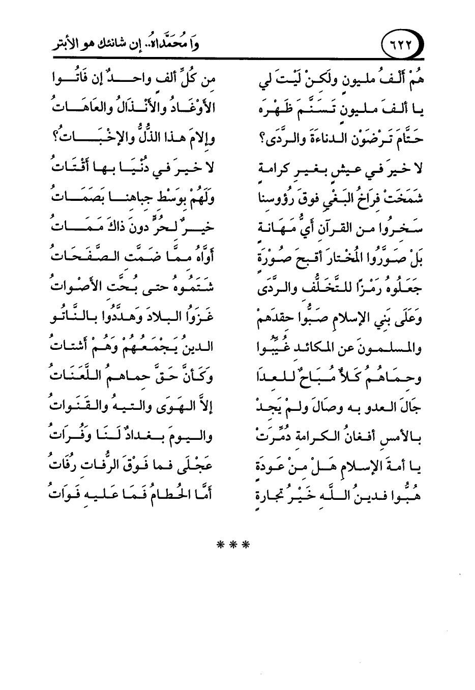 يا أمةَ الإسلامِ هَلْ مِنْ عَودَةٍ ... عَجْلَى فما فَوْقَ الرُّفاتِ رُفَاتُ