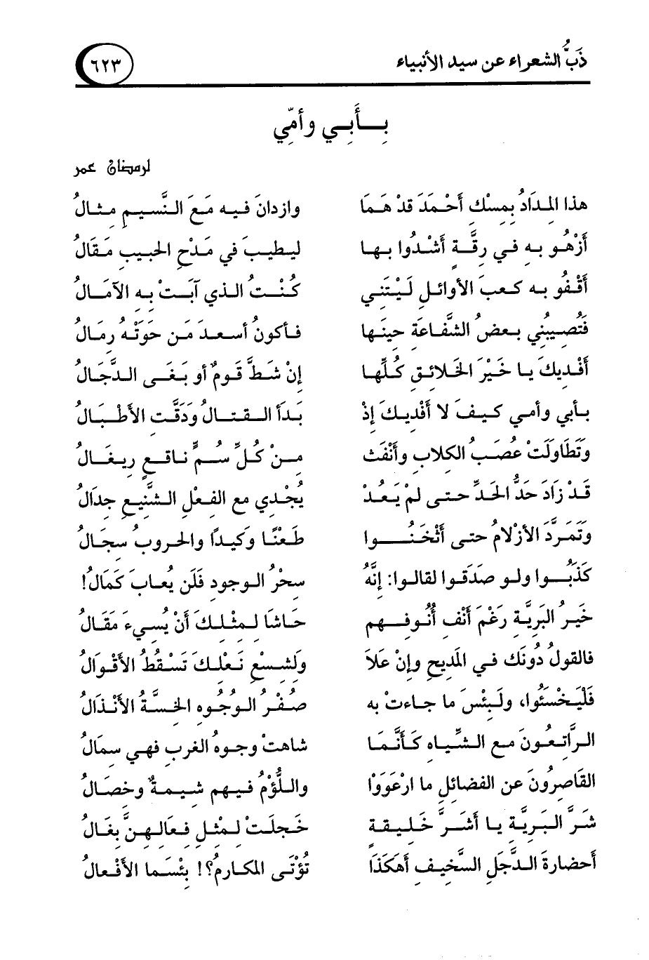هذا المِدَادُ بِمِسْك أحْمَدَ قدْ هَمَا ... وازدانَ فيه مَعَ النَّسيم مِثالُ