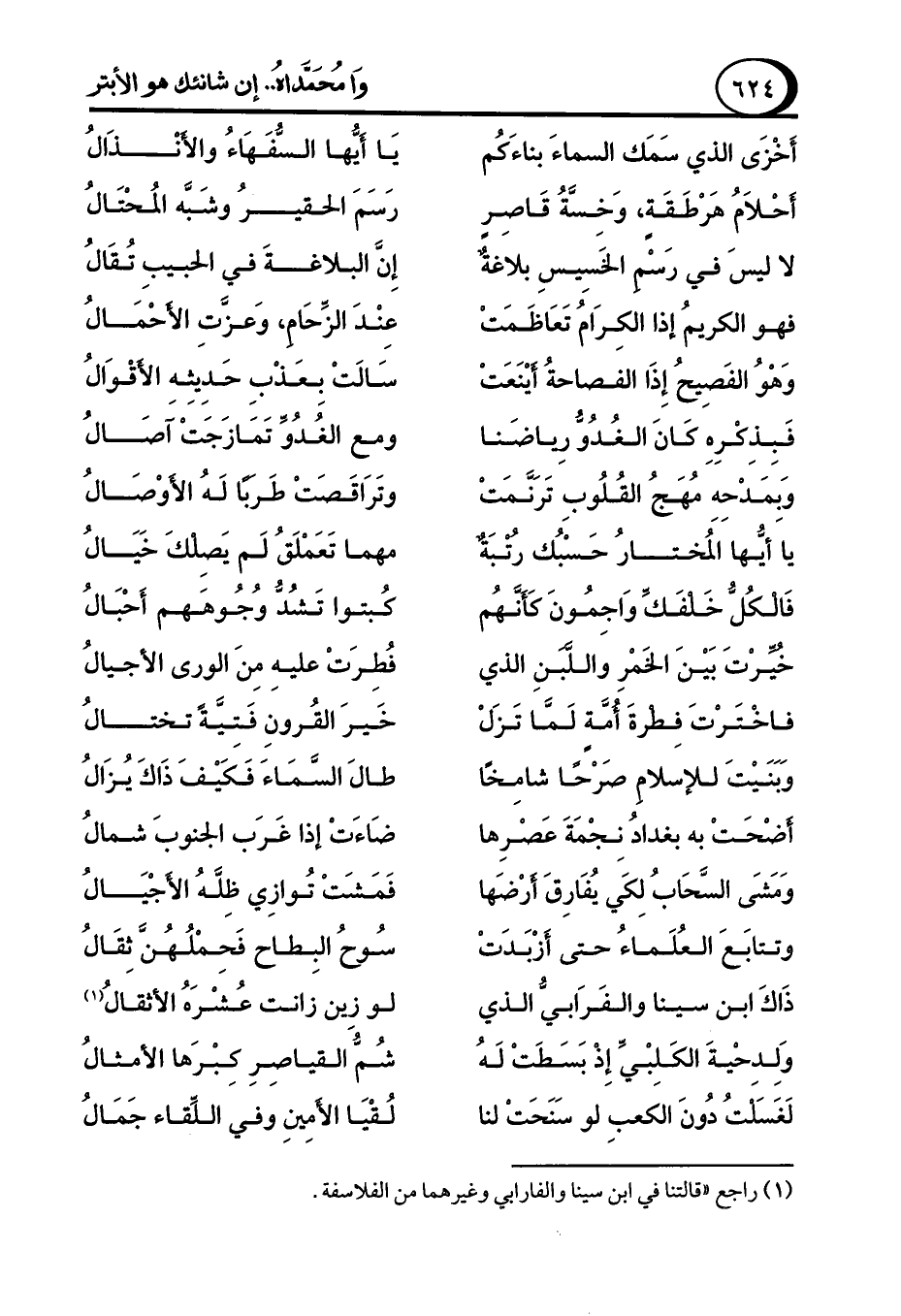 ذَاكَ ابن سينا والفَرَابيُّ الذي ... لو زِين زانت عُشْرَهُ الأثقالُ (¬1)