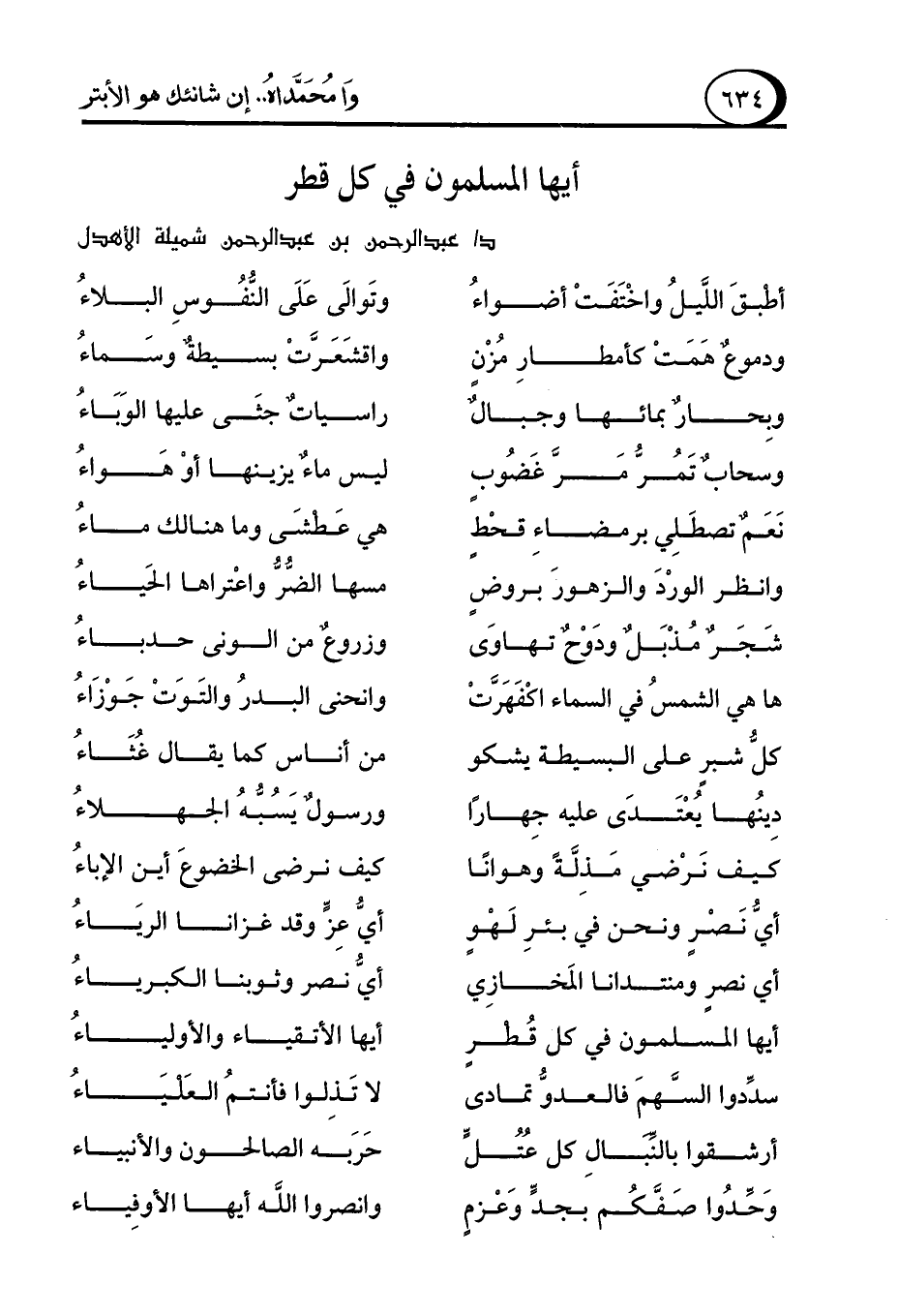 أيها المسلمون في كل قُطر ... أيها الأتقياء والأولياءُ