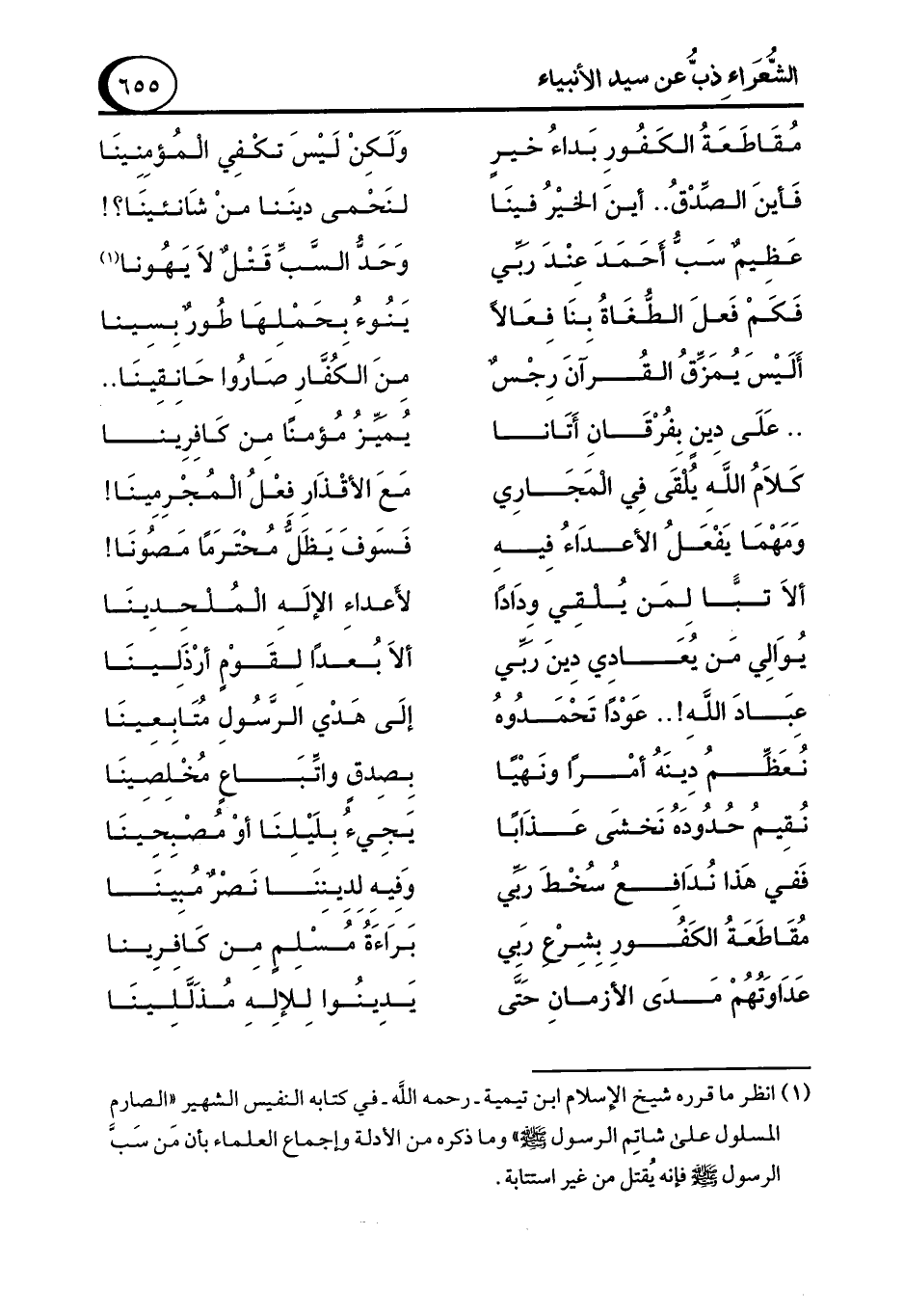 عَظِيمٌ سَبُّ أحَمَدَ عِنْدَ ربَي ... وَحَدُّ السَّبِّ قَتْل لاَ يَهُونا (¬1)