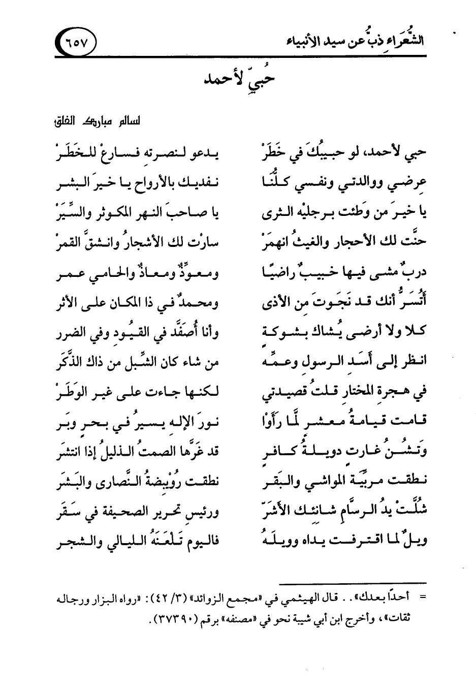 حبي لأحمد، لو حبيبُكَ في خَطَرْ ... يدعو لنصرتهِ فسارعْ للخَطَرْ