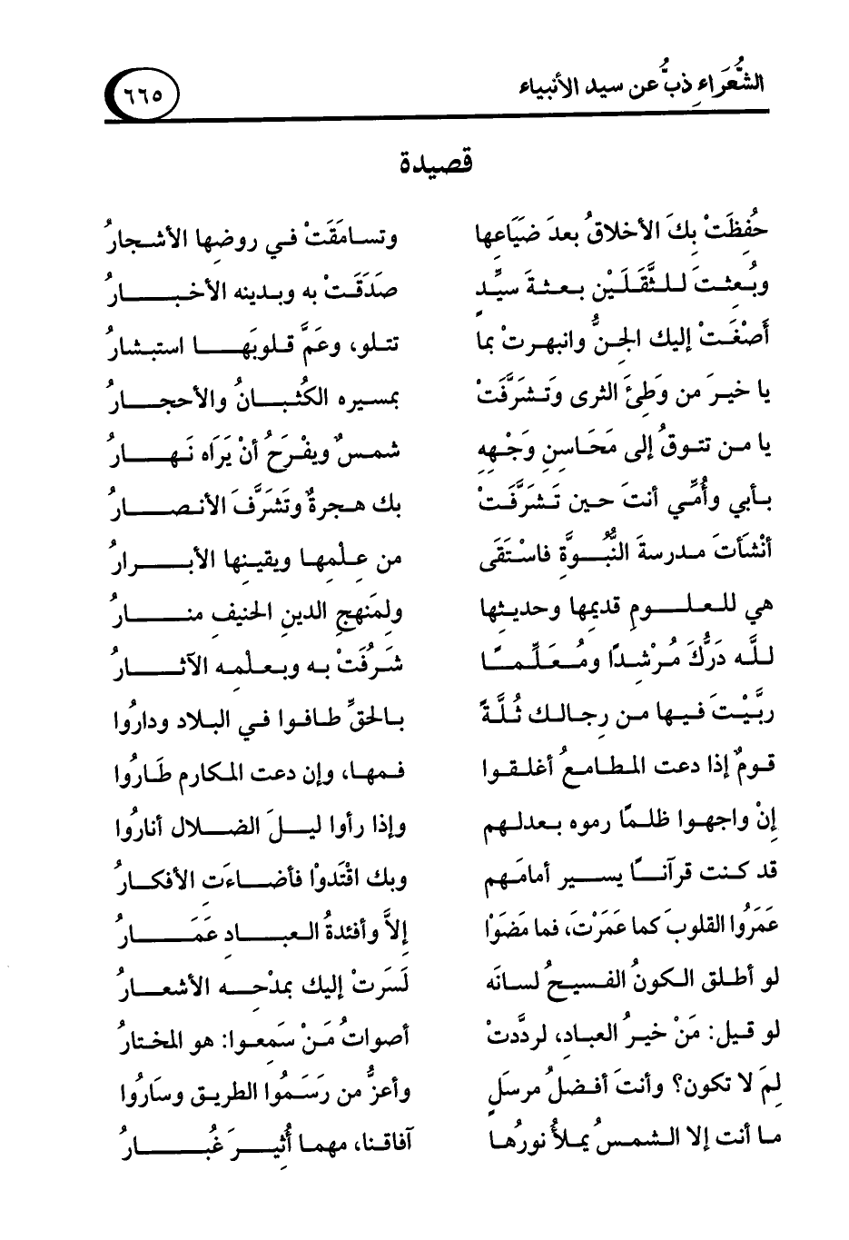 لِمَ لا تكون؟ وأنتَ أفضل مرسَلِ ... وأعزُّ من رَسَمُوا الطريق وسَارُوا