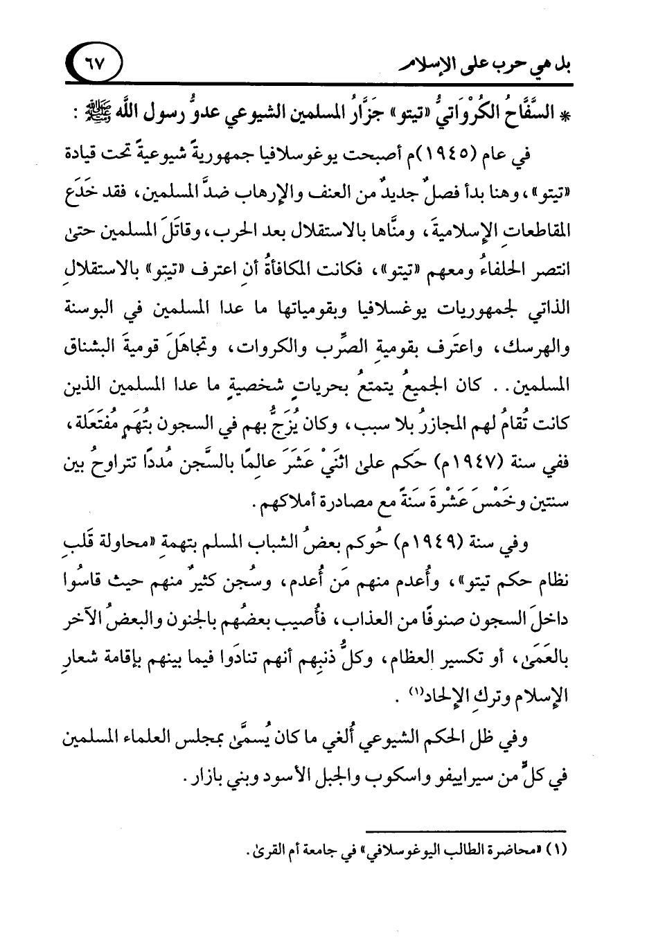 * السَّفَاحُ الكُرْوَاتيُّ "تيتو" جَزَّارُ المسلمين الشيوعي عدوُّ رسول الله - صلى الله عليه وسلم -:
