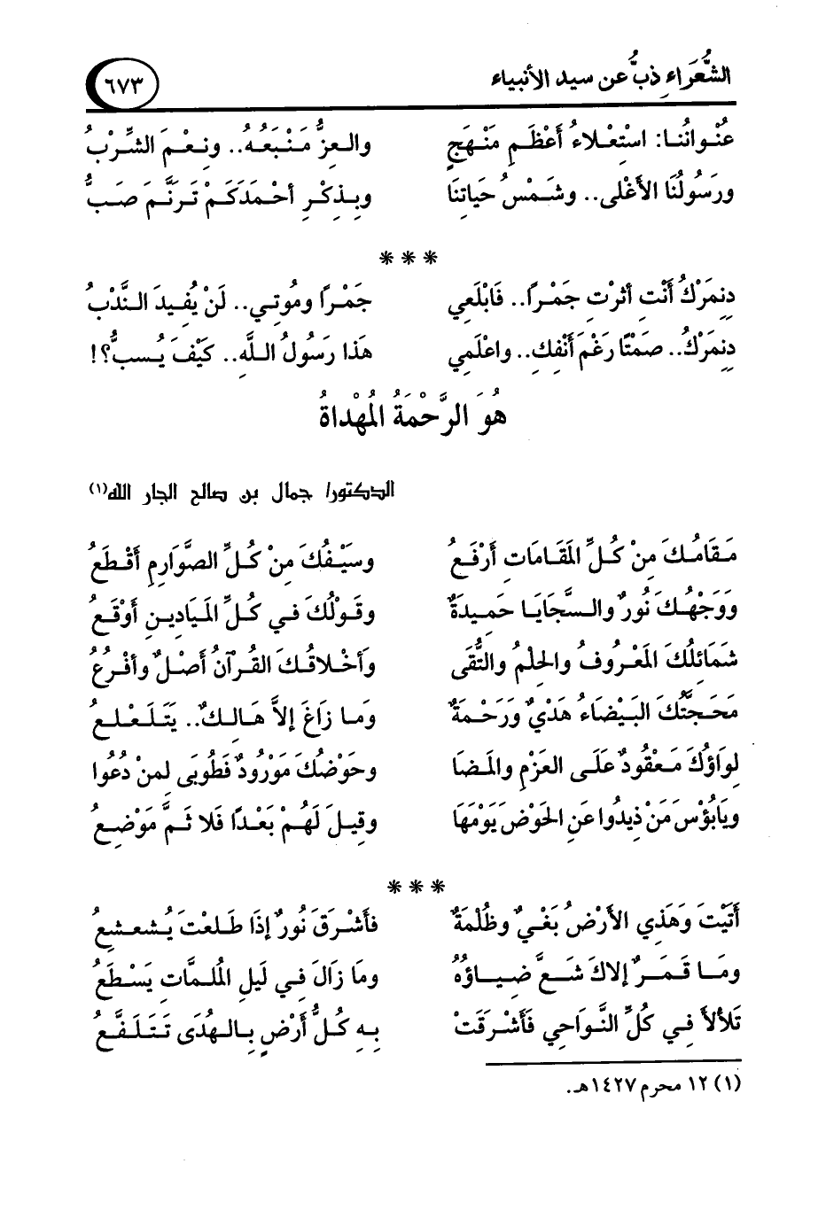 ورَسُولُنَا الأعْلى .. وشَمْسُ حَياتِنَا ... وبِذِكْرِ أحْمَدَكَمْ تَرنَّمَ صَبُّ