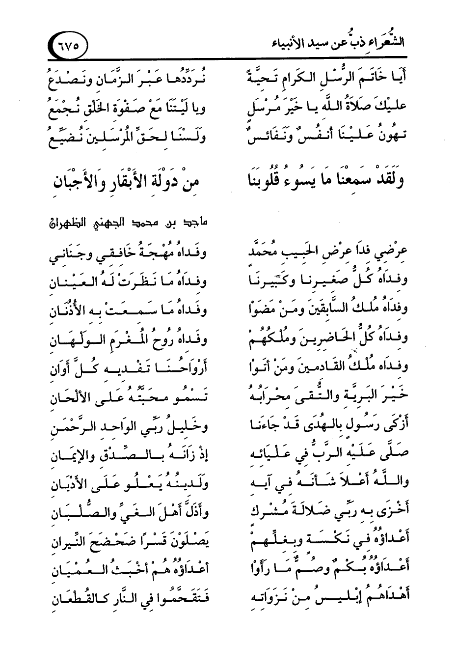 عِرْضِى فِدَا عِرْضِ الحَبِيبِ مُحَمَّدٍ ... وفَداهُ مُهْجَةُ خَافِقِي وجَنَانِي