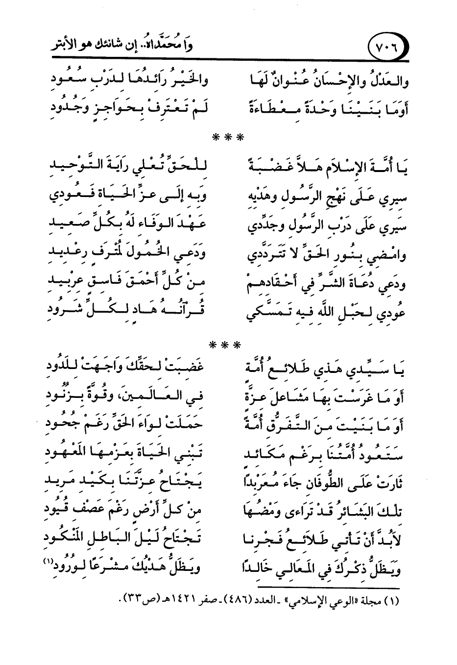 (¬1) مجلة "الوعي الإسلامي"- العدد (486) - صفر 1421 هـ (ص 33).