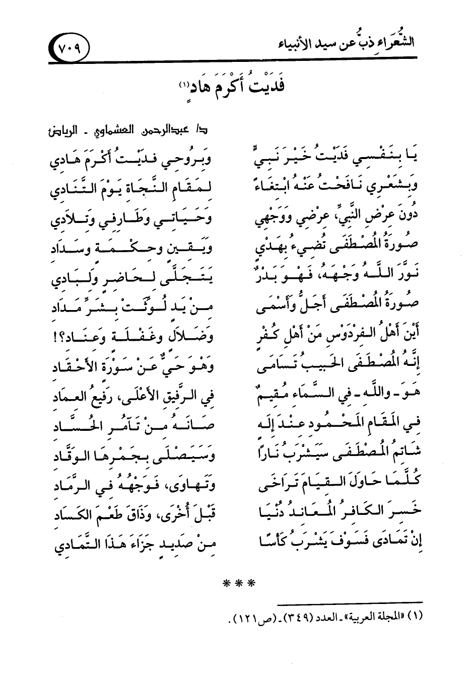فِي المَقَامِ المَحْمُودِ عِنْدَ إِلَه ... صَانَهُ مِنْ تَآمُرِ الحُسَّادِ