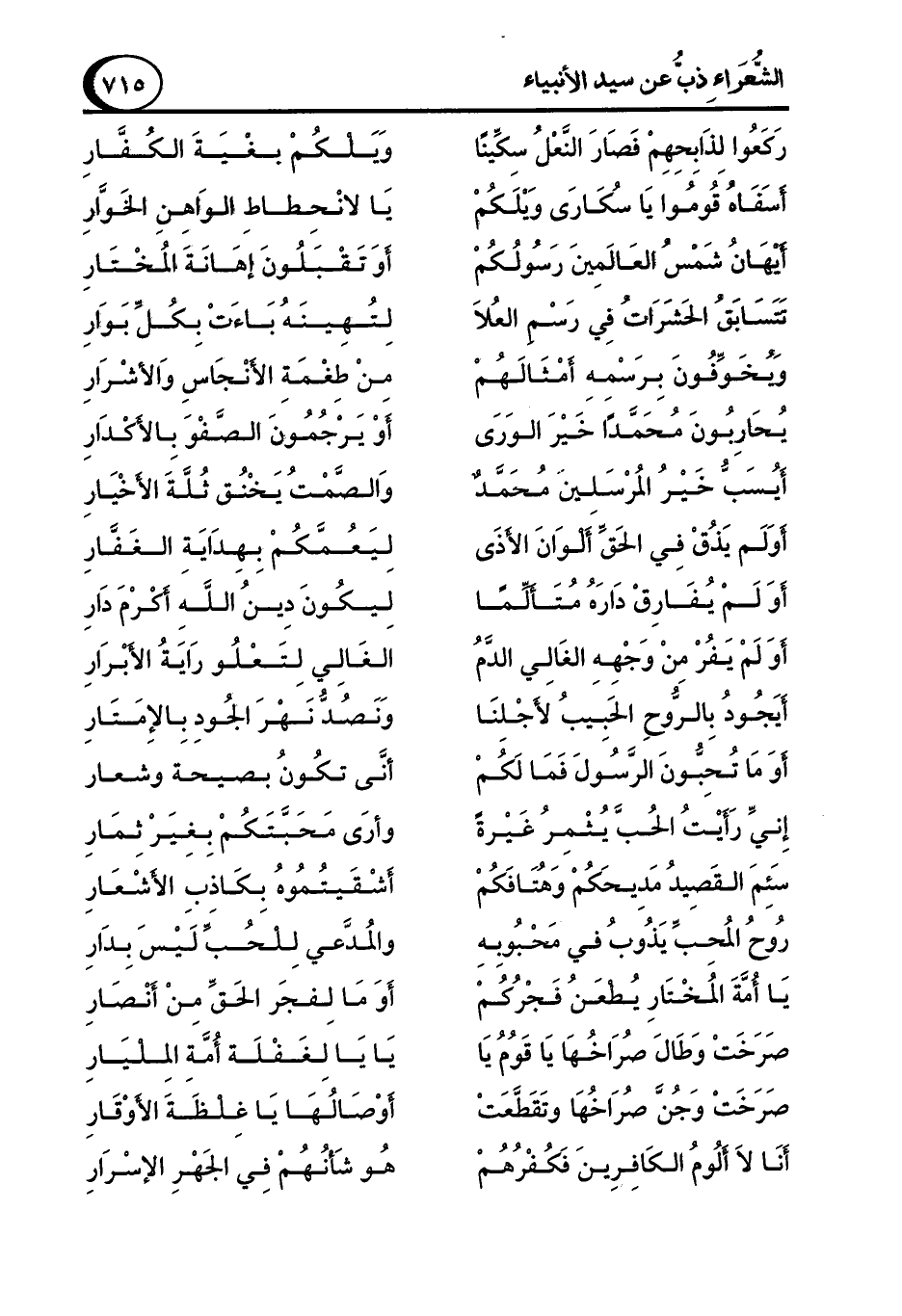 يُحَارِبُونَ مُحَمَّدًا خَيْرَ الوَرَى ... أَوْ يَرْجُمُونَ الصَّفْوَ بِالأكْدَارِ