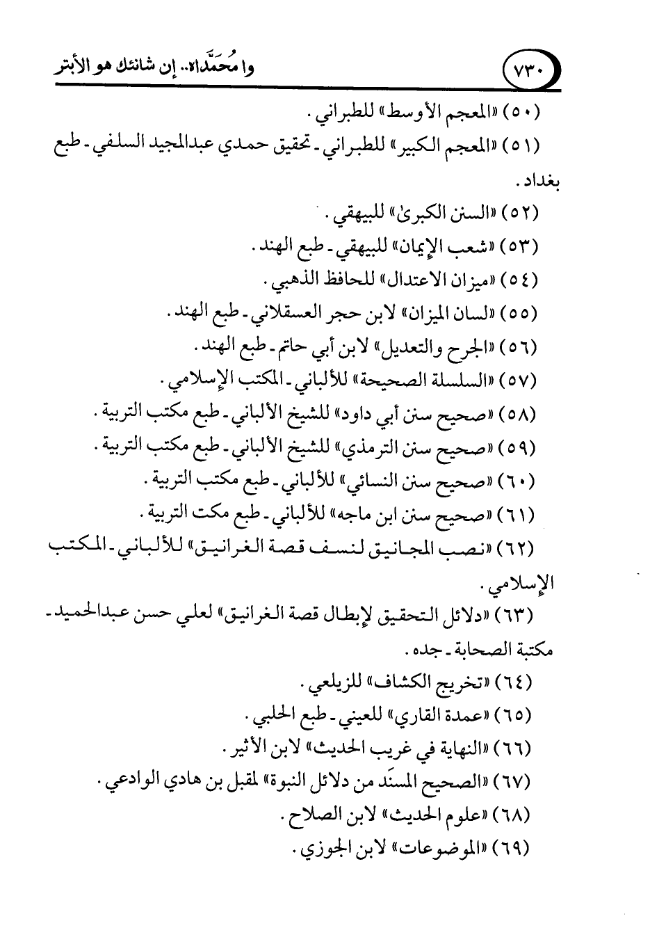 (62) "نصب المجانيق لنسف قصة الغرانيق" للألباني- المكتب الإسلامي.