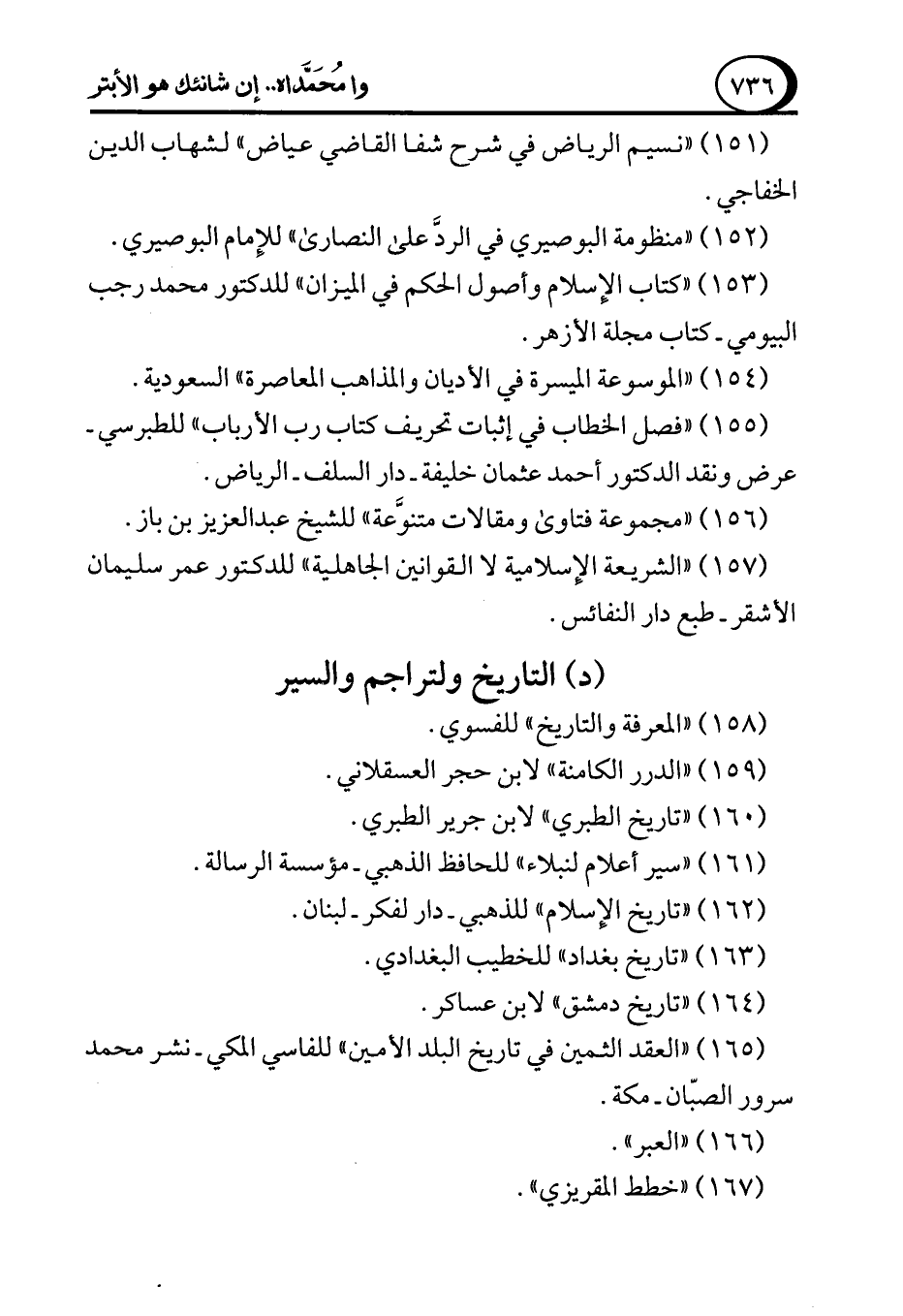 (162) "تاريخ الإسلام" للذهبي- دار لفكر- لبنان.