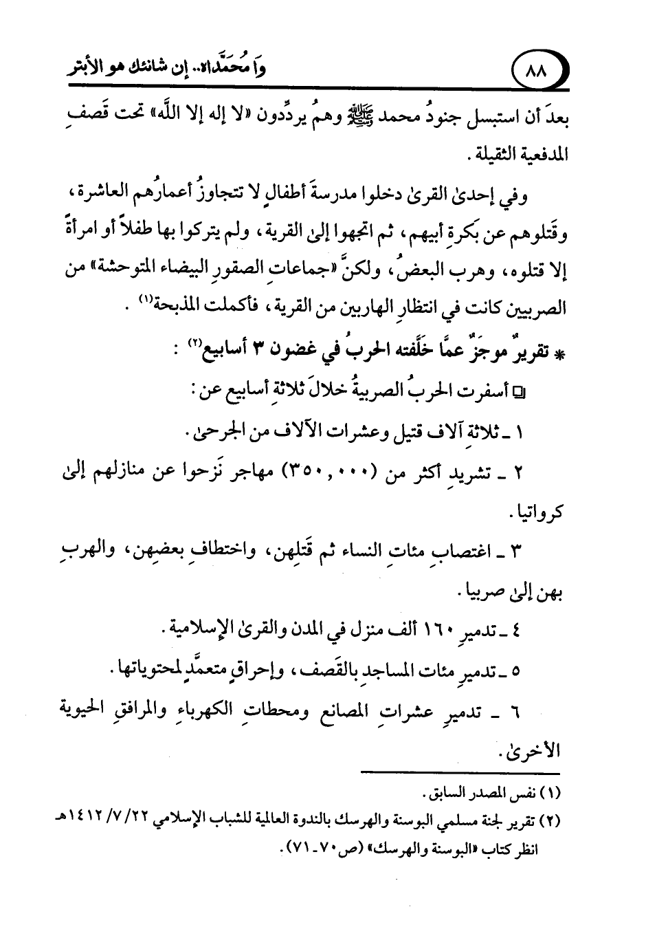 (¬2) تقرير لجنة مسلمي البوسنة والهرسك بالندوة العالمية للشباب الإسلامي 22/ 7/ 1412 هـ انظر كتاب "البوسنة والهرسك" (ص 70 - 71).