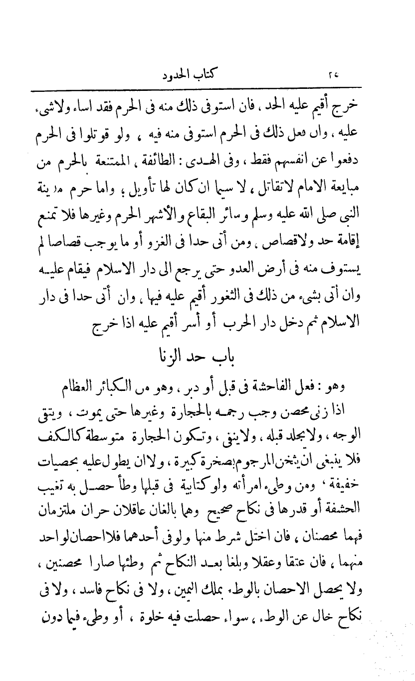 إذا زنى محصن وجب رجمه بالحجارة وغيرها حتى يموت ويتقي الوجه ولا يجلد قبله ولا ينفى وتكون الحجارة متوسطة كالكف فلا ينبغي أن يثخن المرجوم بصخرة كبيرة ولا أن يطول عليه بحصيات خفيفة ومن وطئ امرأته ولو كتابية في قبلها وطأ حصل به تغيب الحشفة أو قدرها في نكاح صحيح وهما بالغان عاقلان حران ملتزمان فهما محصنان فإن اختل شرط منها ولو في أحدهما فلا إحصان لواحد منهما فإن عتقا وعقلا وبلغا بعد النكاح ثم وطئها صارا محصنين ولا يحصل الإحصان بالوطء بملك اليمين ولا في نكاح فاسد ولا في نكاح خال من الوطء سواء حصلت فيه خلوة أو وطئ فيما دون