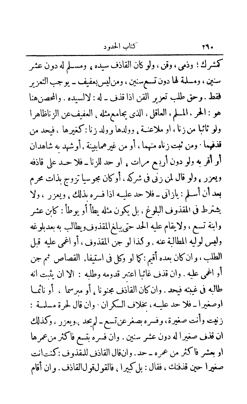 كمشرك وذمي وقن ولو كان القاذف سيده ومسلم له دون عشر سنين ومسلمة لها دون تسع سنين ومن ليس بعفيف - يوجب التعزير فقط وحق طلب تعزير القن إذا قذف - له: لا لسيده والمحصن هنا هو: الحر المسلم العاقل الذي يجامع مثله العفيف عن الزنا ظاهرا ولو ثائبا من زنا أو ملاعنة وولدها وولد زنا: كغيرها فيحد من قذفها ومن ثبت زناه منهما أو من غيرهما ببينة أو شهد به شاهدان أو أقر به ولو دون أربع مرات أو حد للزنا - فلا حد على قاذفة ويعزر ولو قال لمن زنى في شركه أو كان مجوسيا تزوج بذات محرم بعد أن أسلم: يا زاني - فلا حد عليه إذا فسره بذلك ويعزر ولا يشترط في المقذوف البلوغ بل يكون مثله يطأ أو يوطأ: كابن عشر وابنة تسع ولا يقام عليه الحد حتى يبلغ المقذوف ويطالب به بعد بلوغه وليس لوليه المطالبة عنه وكذا لو جن المقذوف أو أغمى عليه قبل الطلب وإن كان بعده أقيم: كما لو وكل في استيفاء القصاص ثم جن أو أغمى عليه وإن قذف غائبا اعتبر قدومه وطلبه: إلا أن يثبت أنه طالبه في غيبته فيحد وإن كان القاذف مجنونا أو مبرسما أو نائما أو صغيرا - فلا حد عليه بخلاف السكران وإن قال لحرة مسلمة: زنيت وأنت صغيرة وفسره بصغر عن تسع - لم يحد ويعزر وكذلك إن قذف صغيرا له دون عشر سنين وإن فسره بتسع فأكثر من عمرها أو بعشر فأكثر من عمره - حد وإن قال القاذف للمقذوف: كنت أنت صغيرا حين قذفتك فقال: بل كبيرا فالقول قول القاذف وإن أقام