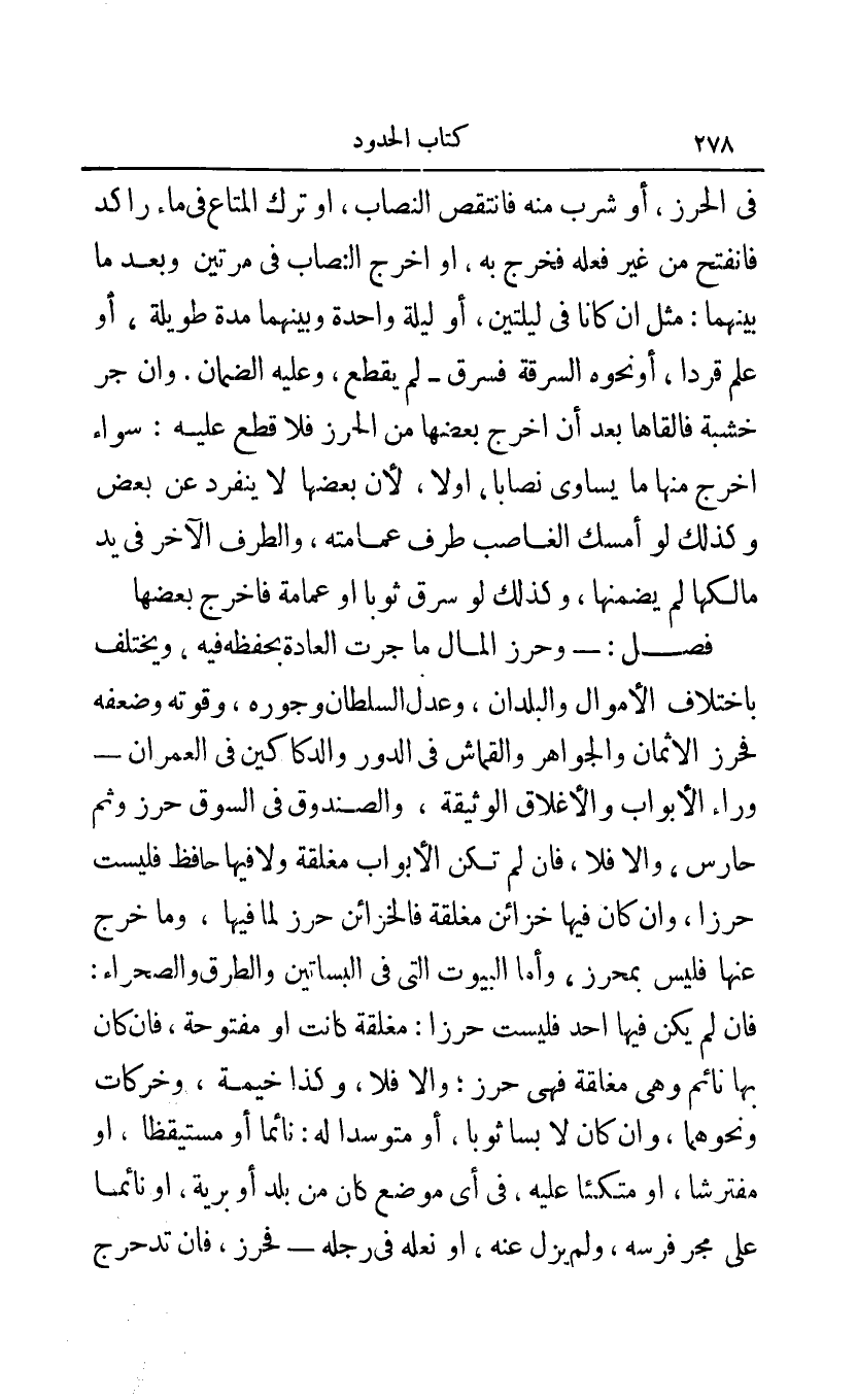 فصل: - وحرز المال ما جرت العادة بحفظه فيه