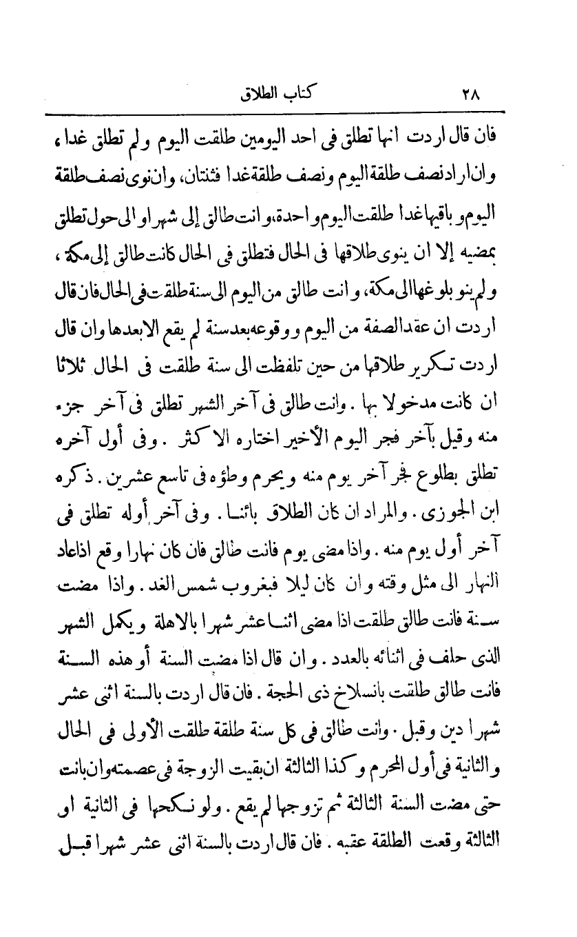 فإن قال أردت أنها تطلق في أحد اليومين طلقت اليوم ولم تطلق غدا وإن أراد نصف طلقة اليوم وباقيها غدا طلقت اليوم واحدة وأنت طالق إلى شهر أو إلى حول تطلق بمضيه إلا أن ينوى طلاقها في الحال فتطلق في الحال كانت طالق إلى مكة ولم ينو بلوغها إلى مكة وأنت طالق من اليوم إل سنة طلقت في الحال فإن قال أردت أن عقد الصفة من اليوم ووقوعه بعد سنة لم يقع إلا بعدها وإن قال أردت تكرير طلاقها من حين تلفظت إلى سنة طلقت في الحال ثلاثا إن كانت مدخولا بها وأنت طالق في آخر الشهر تطلق في آخر جزء منه وقيل بآخر فجر اليوم الأخير اختاره الأكثر وفي أول آخره تطلق بطلوع فجر آخر يوم منه ويحرم وطؤه في تاسع عشرين ذكره ابن الجوزي والمراد إن كان الطلاق بائنا وفي آخر أوله تطلق في آخر أول يوم منه وإذا مضى يوم فأنت طالق فإن كان نهارا وقع إذا عاد النهار إلى مثل وقته وإن كان ليلا فبغروب شمس الغد ووقع إذا عاد النهار إلى مثل وقته وإن كان ليلا فبغروب شمس الغد وإذا مضت سنة فأنت طالق طلقت إذا مضى اثنا عشر شهرا بالأهلة ويكمل الشهر الذي حلف في أثنائه بالعدد وإن قال إذا مضت السنة أو هذه السنة فأنت طالق طلقت بانسلاخ ذي الحجة فإن قال أردت بالسنة اثني عشر شهرا دين وقبل وأنت طالق في كل سنة طلقة طلقت الأولى في الحال والثانية في أول المحرم وكذا الثالثة إن بقيت الزوجة في عصمته وإن بانت حتى مضت السنة الثالثة ثم تزوجها لم يقع ولو نكحها في الثانية أو الثالثة وقعت الطلقة عقبه فإن قال أردت بالسنة اثني عشر شهرا قبل