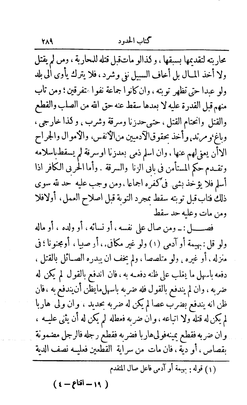 1 قوله: بهيمة أو آدمي فاعل صال المتقدم.
