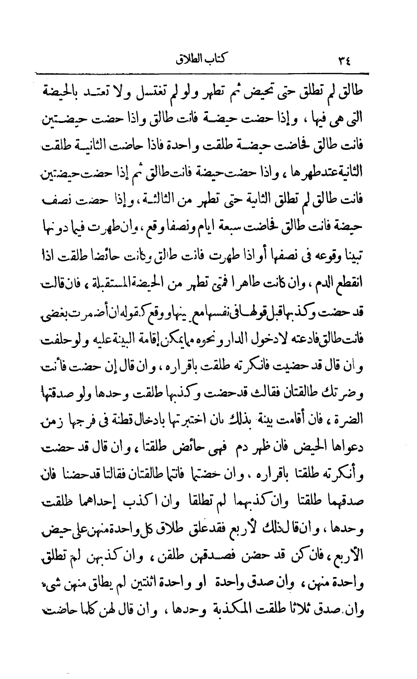 طالق لم تطلق حتى تحيض ثم تطهر ولو لم تغتسل ولا تعتد بالحيضة التي هي فيها وإذا حضت حيضة فأنت طالق وإذا حضت حيضتين فأنت طالق فحاضت حيضة طلقت واحدة فإذا حاضت الثانية طلقت الثانية عتد طهرها وإذا حضت حيضة فأنت طالق ثم إذا حضت حيضتين فأنت طالق لم تطلق الثانية حتى تطهر من الثالثة وإذا حضت نصف حيضة فأنت طالق فحاضت سبعة أيام ونصفا وقع وإن طهرت فيما دونها تبينا وقوعه في نصفها أو إذا طهرت فأنت طالق وكانت حائضا طلقت إذا انقطع الدم وإن كانت طاهرا فمتى تطهر من الحيضة المستقبلة فإن قالت قد حضت وكذبها قبل قولها في نفسها مع تبيينها ووقع كقوله إن أضمرت بغضي فأنت طالق فادعته لا دخول الدار ونحوه مما يمكن إقامة البينة عليه ولو حلفت وإن قال قد حضيت فأنكرته طلقت بإقراره وإن قال إن حضت فأنت وضرتك طالقتان فقالت قد حضت وكذبها طلقت وحدها ولو صدقتها الضرة فإن أقامت بينة بذلك بأن اختبرتها بإدخال قطنة في فرجها زمن دعواها الحيض فإن ظهر دم فهي حائض طلقتا وإن قال قد حضت وأنكرته طلقتا بإقراره وإن حضتما فأنتما طالقتان فقالتا قد حضنا فإن صدقهما طلقتا وإن كذبهما لم تطلقا وإن أكذب إحداهما طلقت وحدها وإن قال ذلك لأربع فقد علق طلاق كل واحدة منهن على حيض الأربع فإن كن قد حضن فصدقهن طلقن وإن كذبهن لم تطلق واحدة منهن وإن صدق واحدة أو واحدة اثنتين لم يطلق منهن شيء وإن صدق ثلاثا طلقت المكذبة وحدها وإن قال لهن كلما حاضت